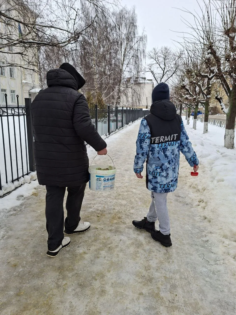 В рамках благотворительной акции наши ребята проявили настоящую заботу о горожанах: они посыпали песком тротуар на улице Полковой! По этой дороге люди спешат в магазины, в банк, на почту, в больницу, которая находится неподалёку. К сожалению, погодные условия превратили заснеженный тротуар в каток, который грозит обернуться неприятностями, особенно для пожилых горожан.