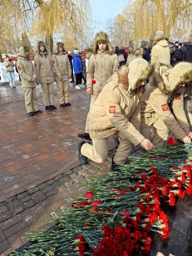 23 февраля учащиеся нашей школы — члены юнармейского отряда имени Героя Российской Федерации Д. Е. Иванова — приняли участие в торжественной церемонии возложения цветов.