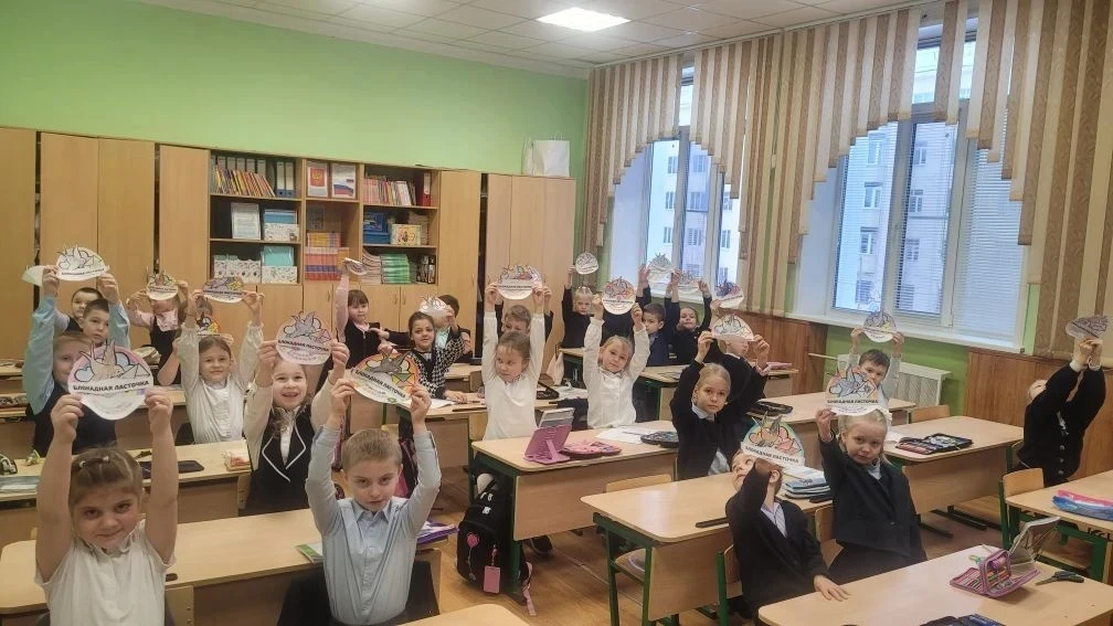 Учащиеся 1Б класса изготовили из бумаги ласточку - символ надежды и мира, изучили историю её появления в Ленинграде. На своих поделках, ребята написали добрую весть.