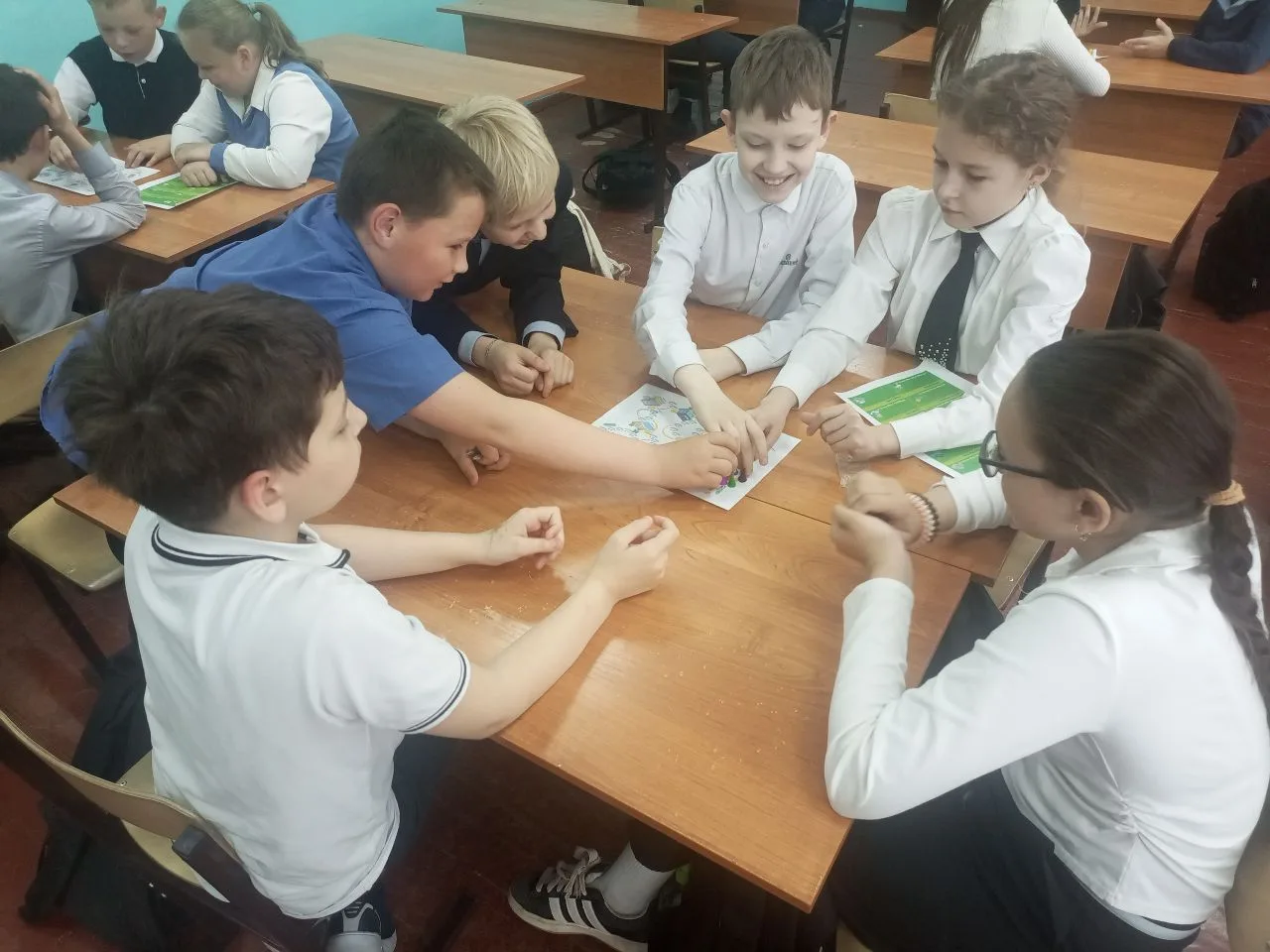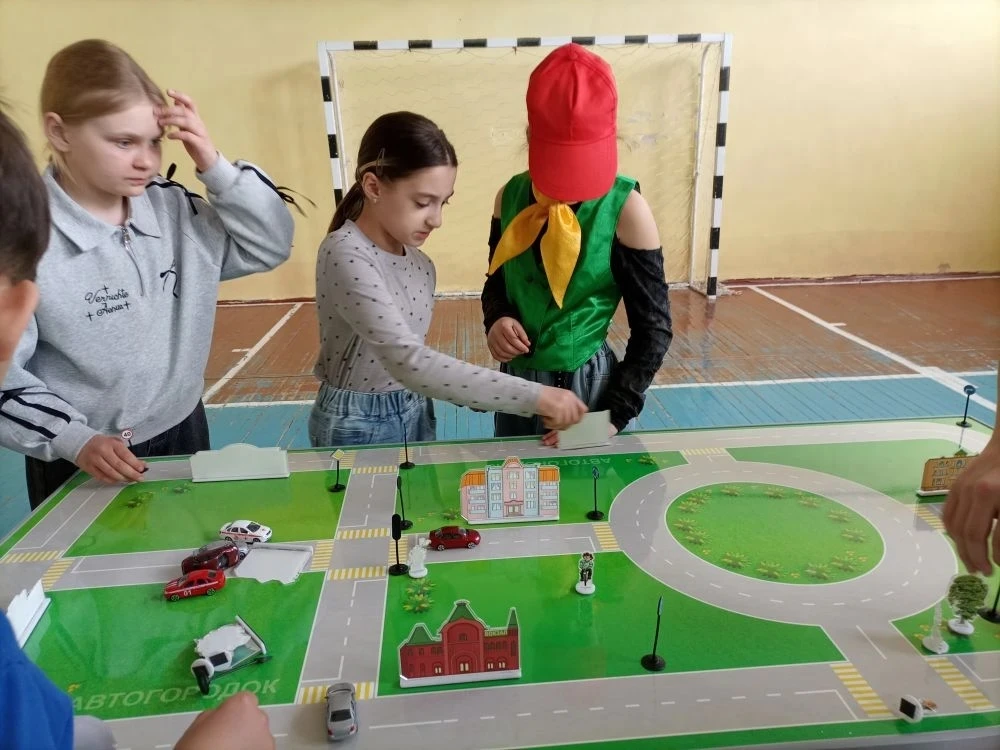Вторым этапом стала настольная игра. Школьники самостоятельно расставляли игрушечные машинки, пешеходов и дорожные знаки, моделируя различные дорожные ситуации и находя правильные решения.