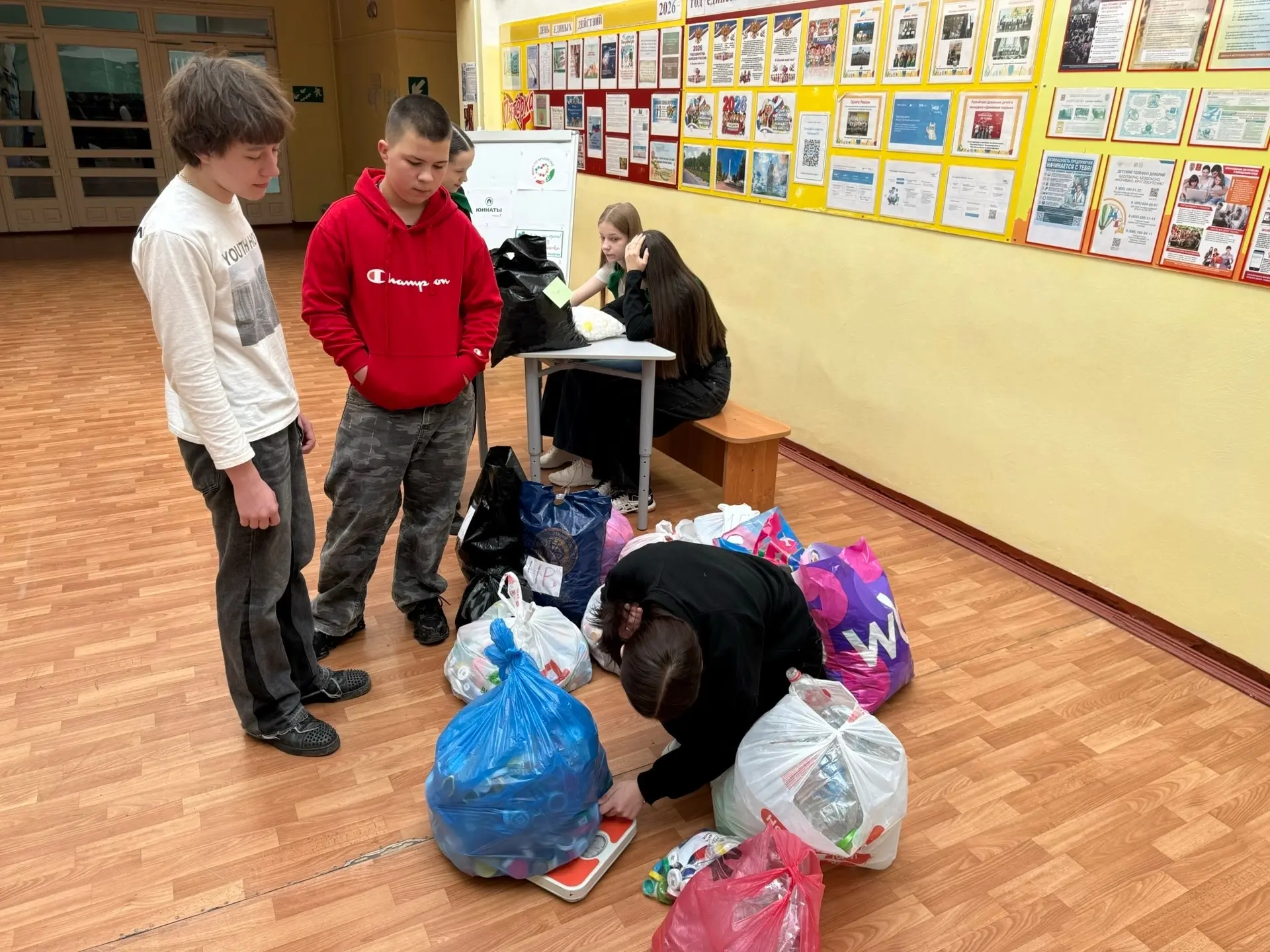 🤝 Наши юннатами из 7-х классов вместе с учиьелями Александрой Сергеевной и Даниилом Сергеевичем отвезли весь собранный пластик в экопункт.