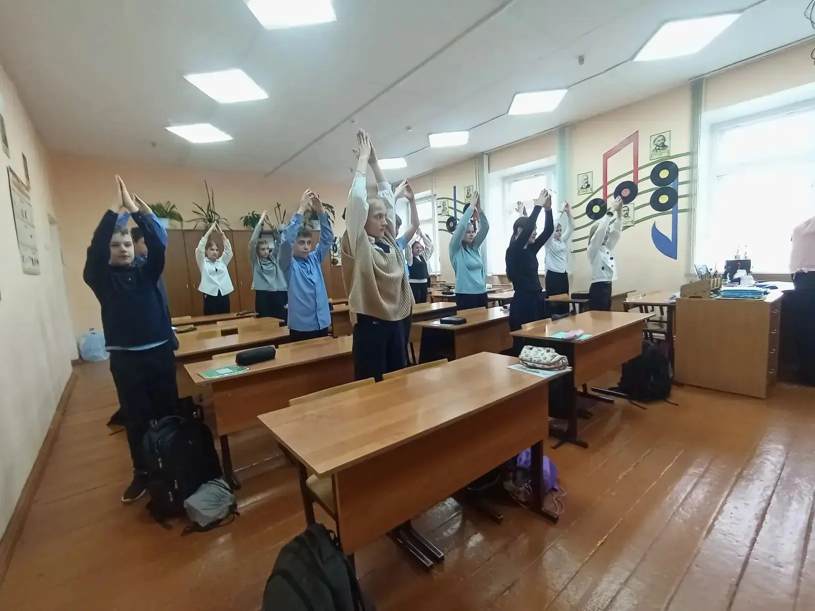 Сегодня в 9 часов в нашей школе прошла веселая зарядка, в которой приняли участие все классы, с 1 по 11. Бодрая, весёлая музыка сопровождала простые, но очень полезные упражнения. Ребята получили заряд бодрости на целый день!