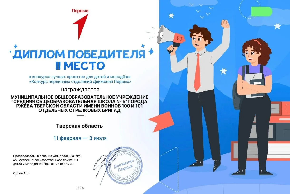 В 2025 году наша дружная команда Первых заняла почетное призовое место во Всероссийском конкурсе первичных отделений. ⭐️ Это большое достижение, и мы искренне гордимся нашим коллективом! 💥