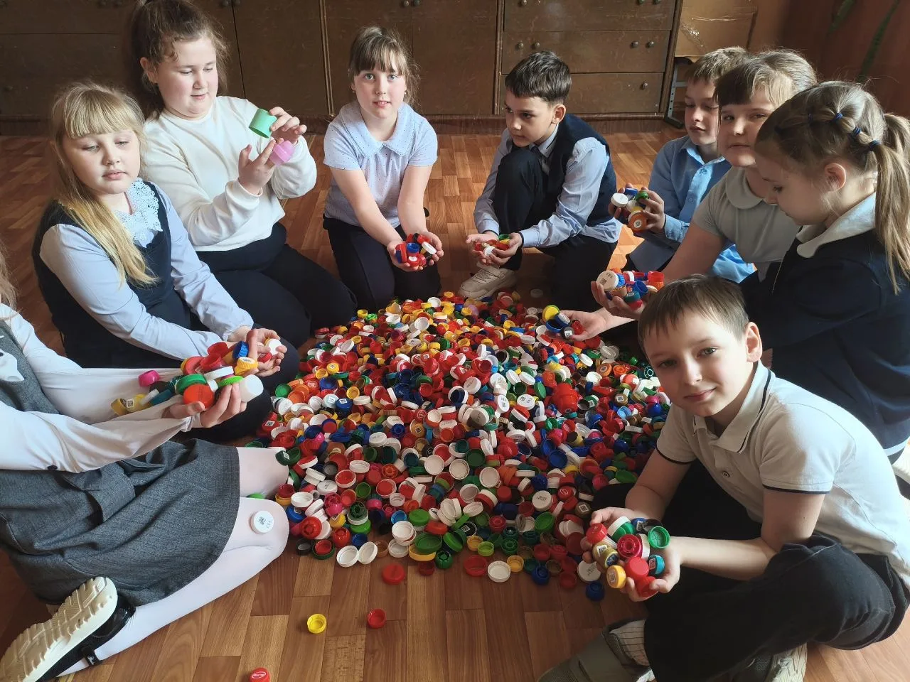 Все вместе мы активно собирали пластиковые крышки и бутылки, ведь забота о природе — это дело каждого! 🌿