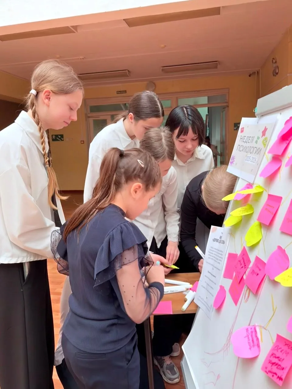 В рамках Недели психологии в школе прошла акция «Дерево добрых слов». Ребята писали на стикерах 🍃 добрые пожелания, комплименты и слова благодарности. Все записки разместили на общем ярком дереве.