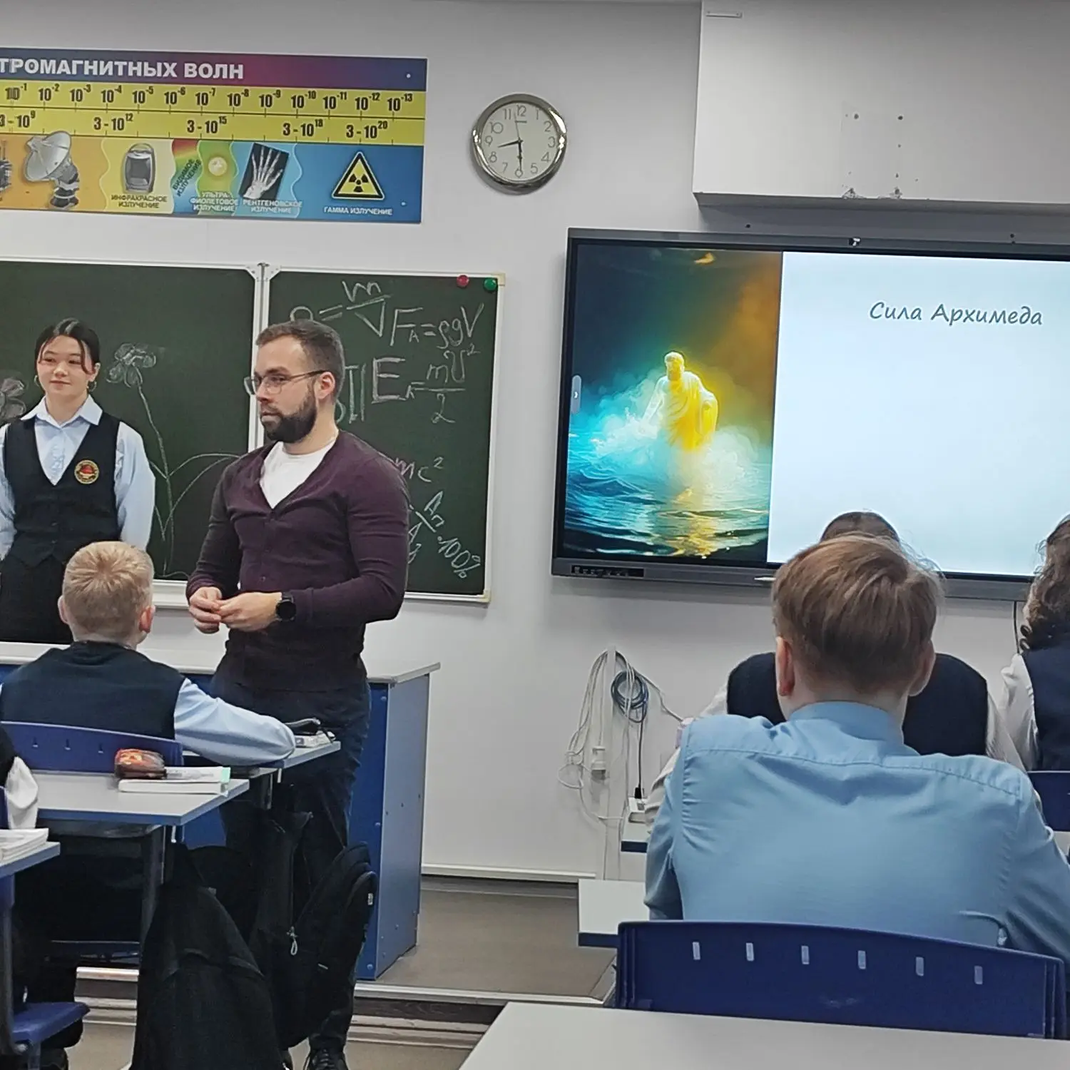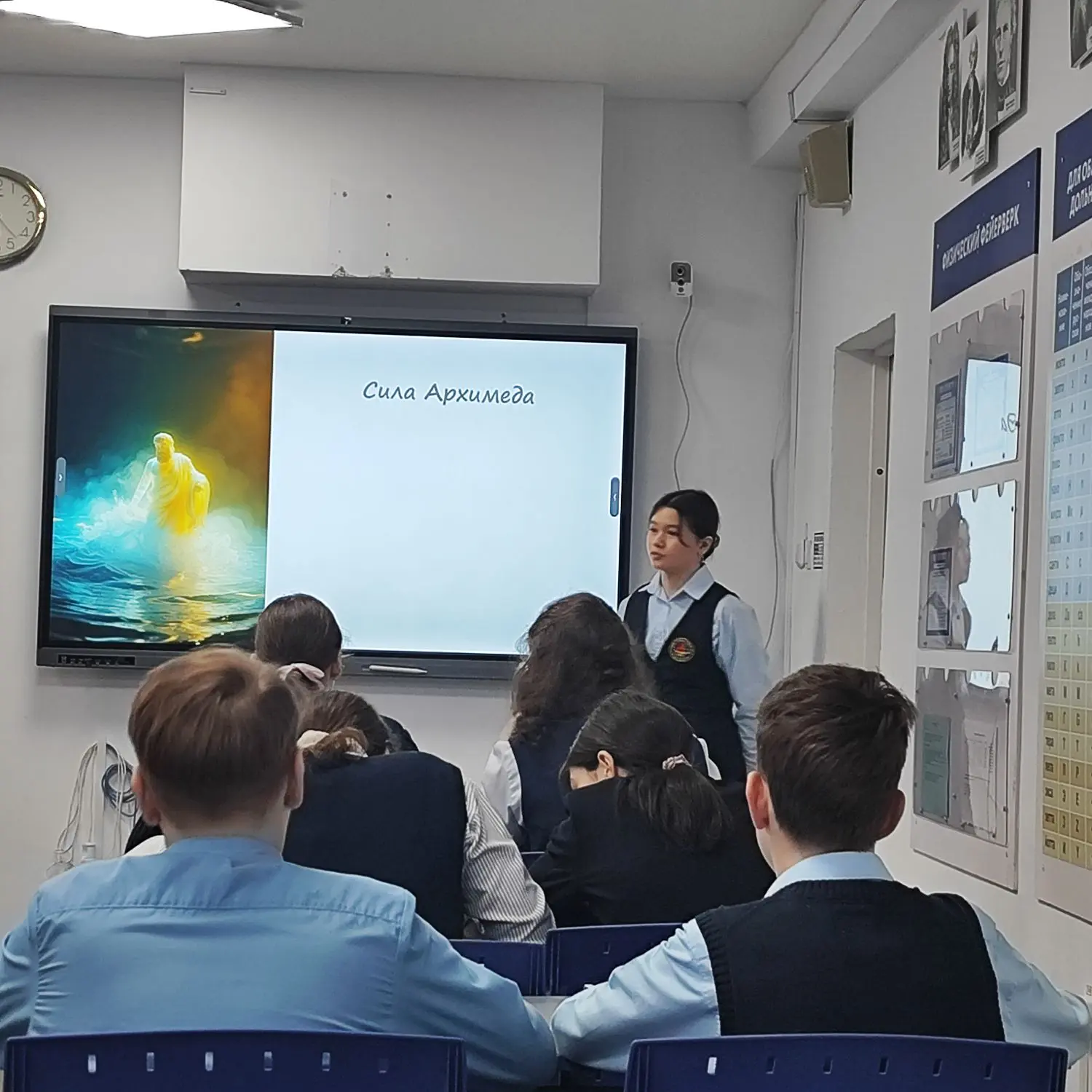 Темой занятий стала одна из ключевых в курсе физики 7 класса — «Сила Архимеда». Юный педагог не просто рассказала теорию, но и постаралась донести материал наглядно и интересно. Ребята из 7-х классов с удовольствием включились в работу, ведь объяснение от старшей ученицы — это всегда возможность взглянуть на предмет с другой стороны.