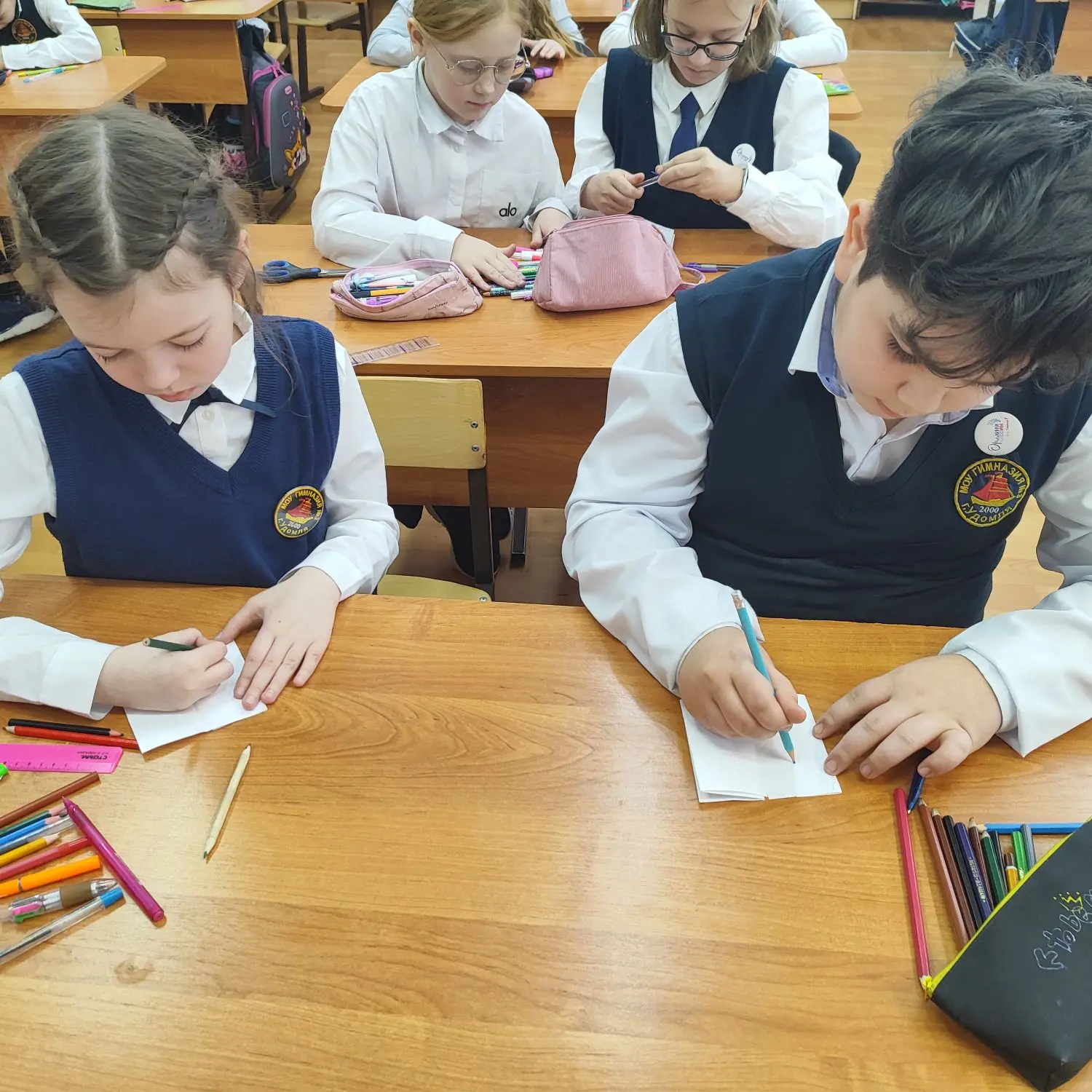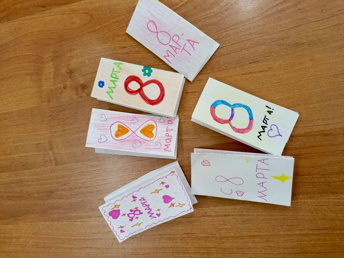 Самое интересное ждало ребят впереди: они стали юными издателями и оформителями! Вместо покупной открытки каждый ученик сделал эксклюзивную «Книжку тёплых слов» для своей мамы или бабушки. Дети вложили в свои работы максимум фантазии и нежности.