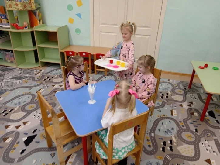 Ребята второй младшей группы погрузились в увлекательный мир этикета за столом. В сюжетно‑ролевых играх они: