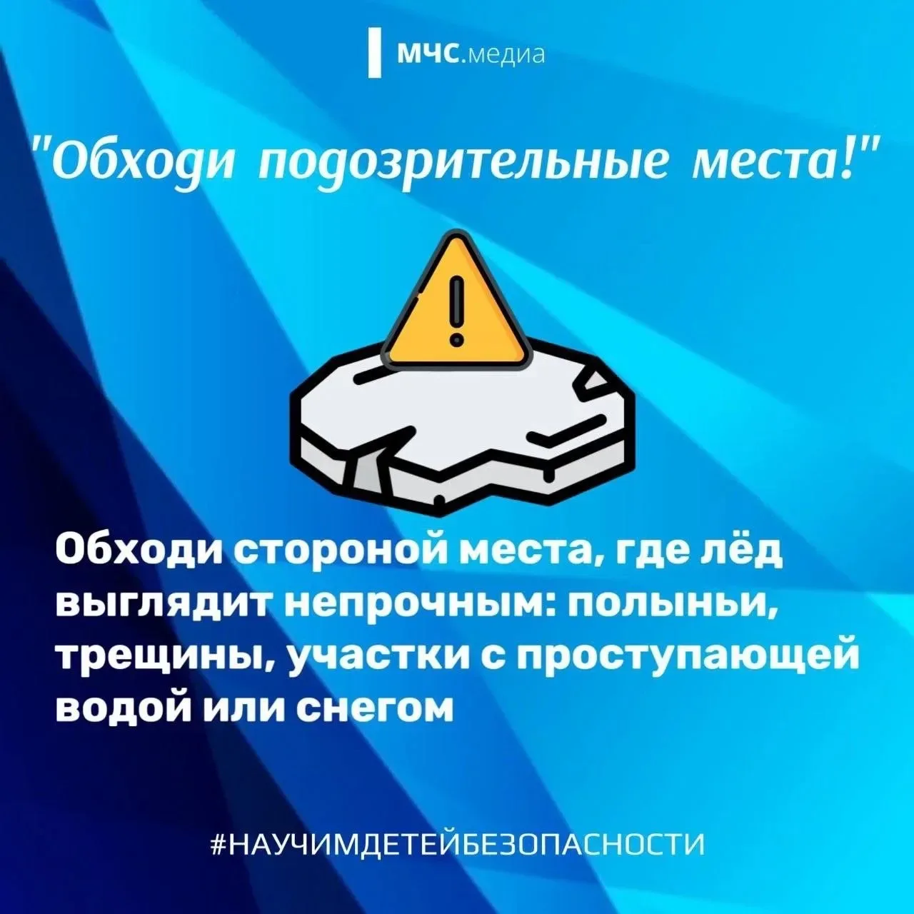 ❗ Родители, объясните детям, что даже если лед выглядит крепким, днем под солнцем он становится пористым и рыхлым. Особенно опасны участки возле берегов, которые размывают потоки, – существует риск обвала склонов.