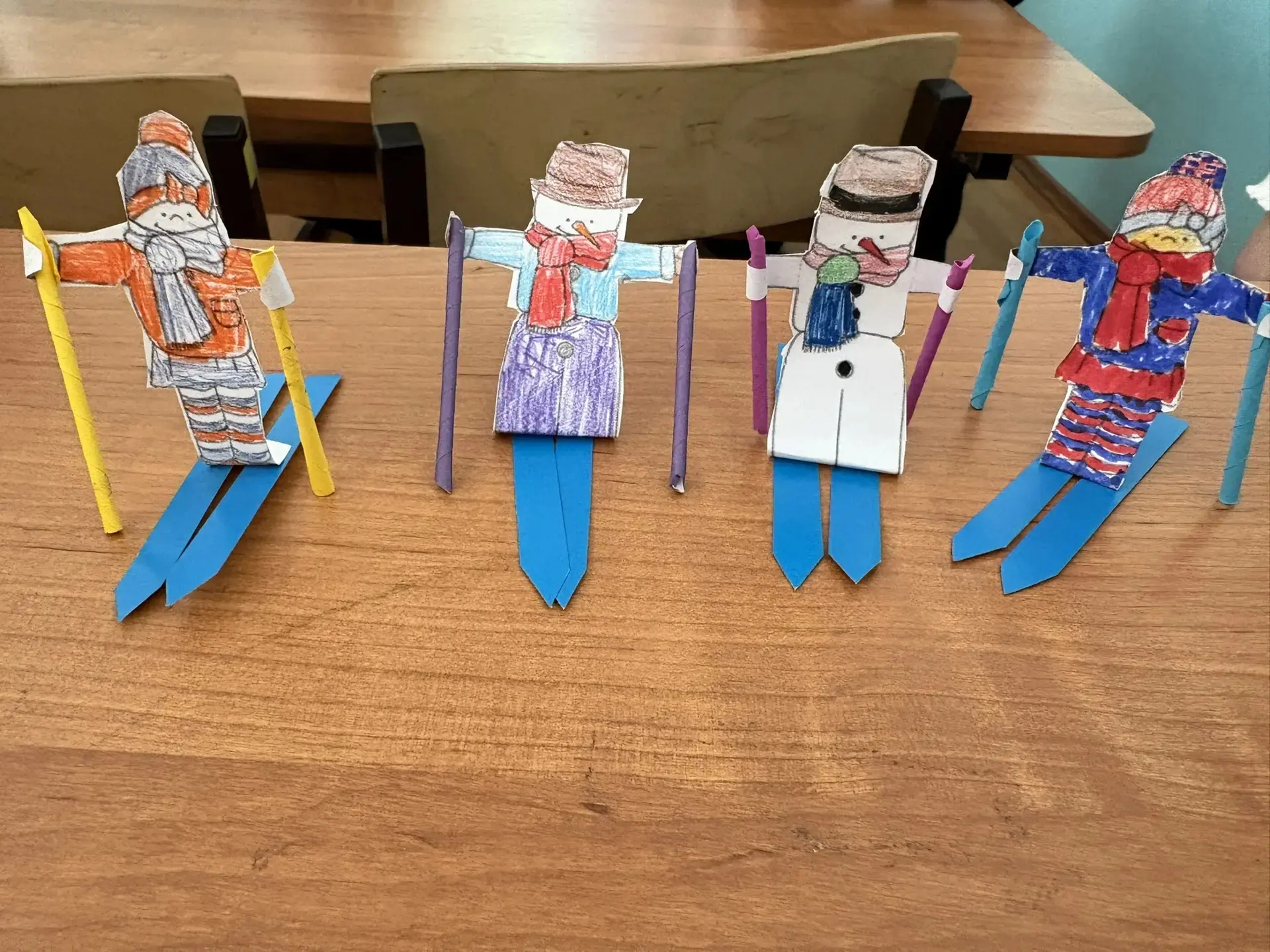 С какой же радостью и азартом дети вырезали, клеили и раскрашивали свои поделки! Каждый лыжник получился особенным и готовым покорять снежные склоны.