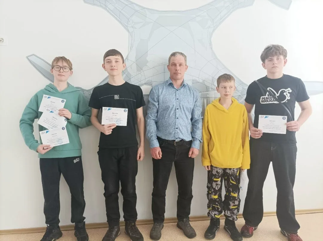1-2 апреля команда восьмиклассников из нашей школы в составе: Беклемышева Романа (8Б класс), Петрова Никиты (8В класс), Кудряшова Владислава (8Г класс) и Зобычева Льва (8Г класс) под руководством Кривенцова Л.А. (учителя труда) посетила каникулярную смену по беспилотным системам «Юный пилот».
