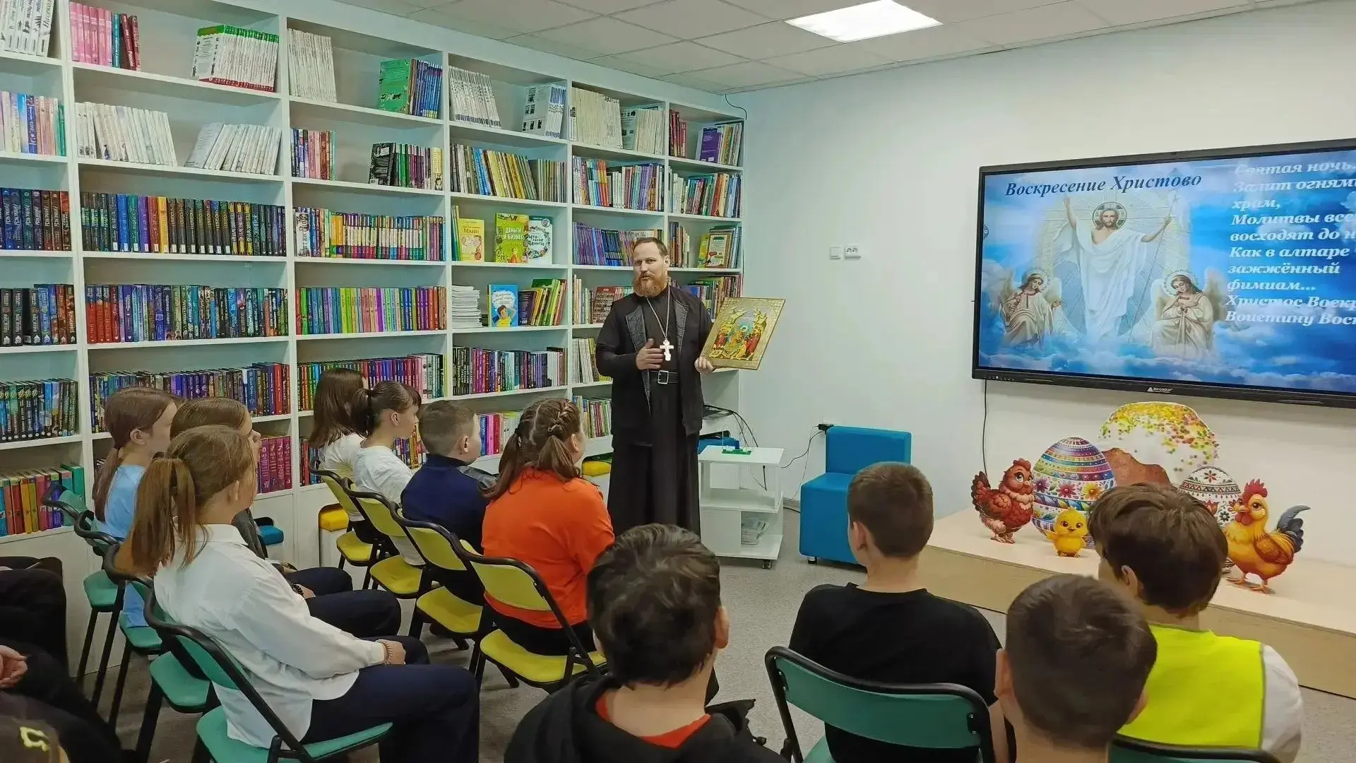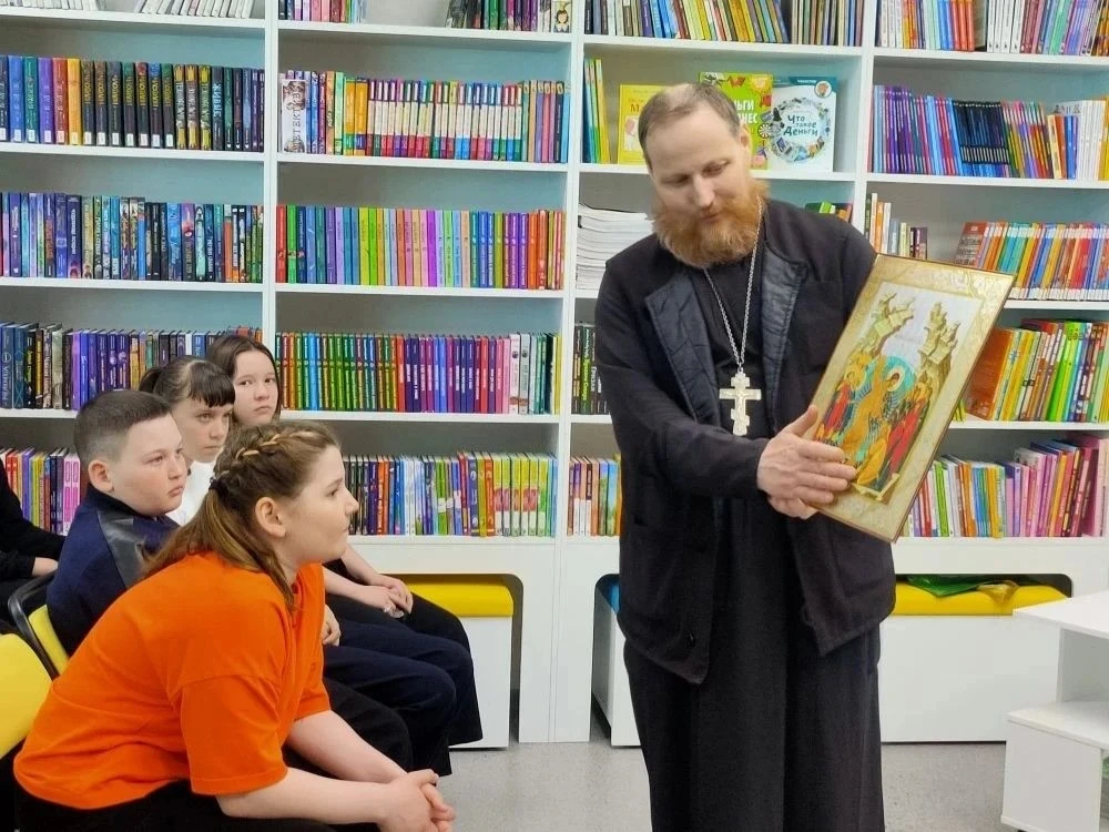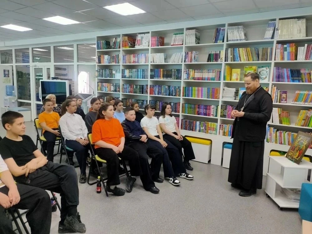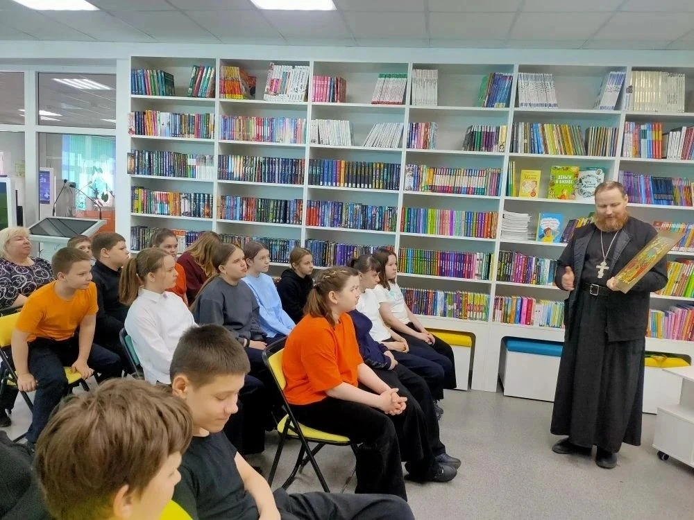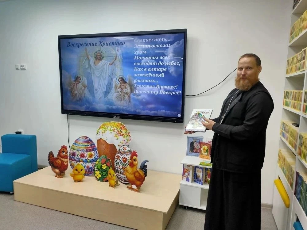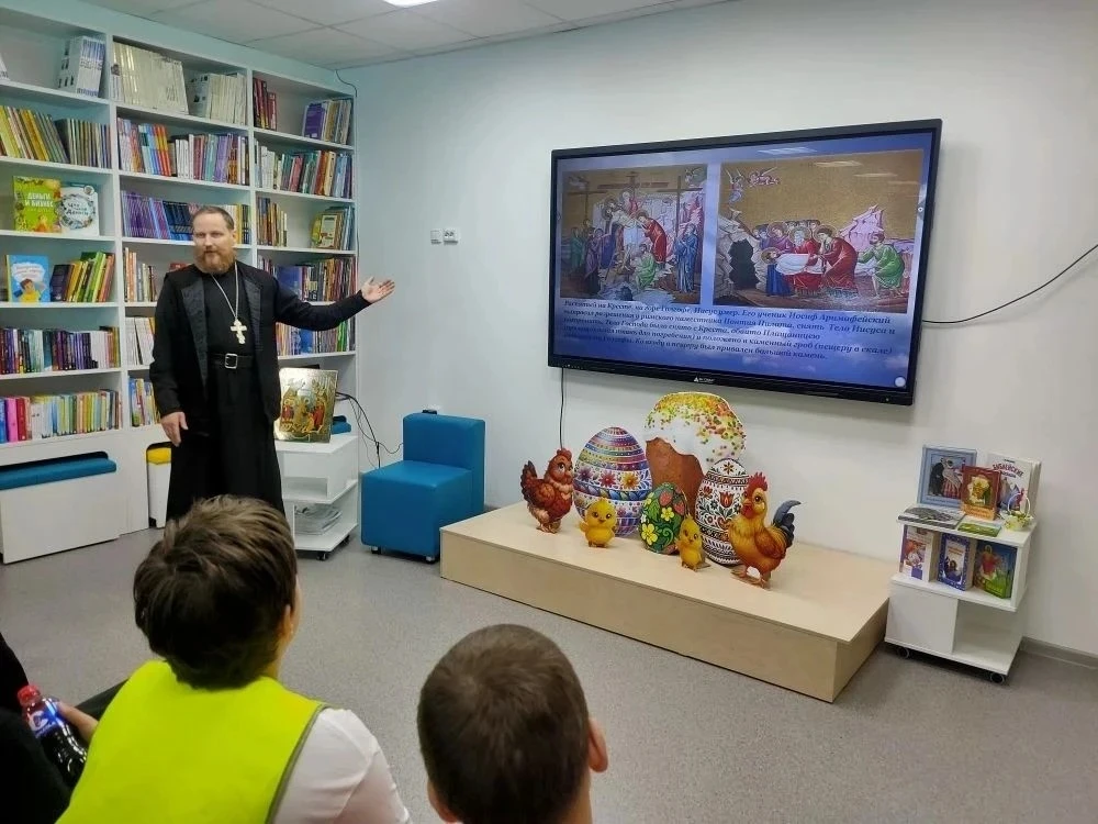 В рамках Года единства народов России, сотрудники Детской библиотеки вместе с Настоятелем Храма Святого великомученика Георгия Победоносца с. Ново-Кусково, иереем Александром Денисовым, организовали духовную беседу под названием «Пасха - главный праздник православных христиан» для учащихся 5б класса. Сотрудник библиотеки начала встречу с напоминания ребятам о том, что в минувшее воскресенье, 12 апреля, по всей России — от Чукотки до Крыма — миллионы православных христиан отмечали Пасху, главный праздник церковного года. С интересом ребята слушали рассказ отца Александра об истории праздника, о нелегкой и святой участи Иисуса Христа. Особенно важно, что отец Александр обратил внимание школьников на необходимость уважительного отношения друг к другу, несмотря на все различия между ними. Ученики с интересом слушали настоятеля, активно участвовали в беседе и даже сами задавали вопросы и получали на них содержательные ответы. Привлекали внимание выставка, подготовленная сотрудниками Детской библиотеки, разнообразие книг по данной теме. Встреча прошла в дружеской и теплой атмосфере, что способствовало лучшему пониманию и восприятию обсуждаемых тем. Такие мероприятия помогают не только укрепить знания о православных традициях, но и формируют у детей чувство общности и уважения к культурному наследию.