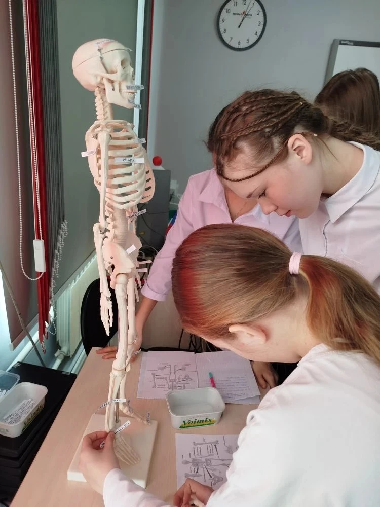 ✅️ путешествовали по костному миру «От черепа до пяток», познакомились со строением скелета человека, отработали навыки распознания костей на муляжах, поучаствовали в игровом шоу "Скелет человека" , а также узнали, какие бывают виды переломов и как грамотно оказать первую доврачебную помощь при повреждении скелета.