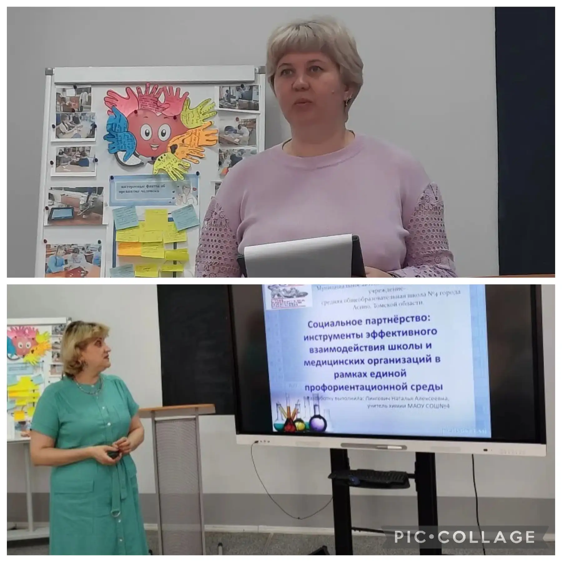 Захаренко Елена Николаевна представила доклад: «Шаг в медицину»: как школьная профильная смена становится стартом в профессию. Наталья Алексеевна Лингевич рассказала о социальном партнерстве как инструменте эффективного взаимодействия школы и медицинских организаций в рамках единой профориентационной среды.