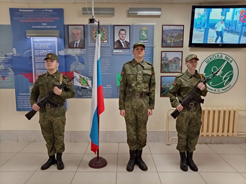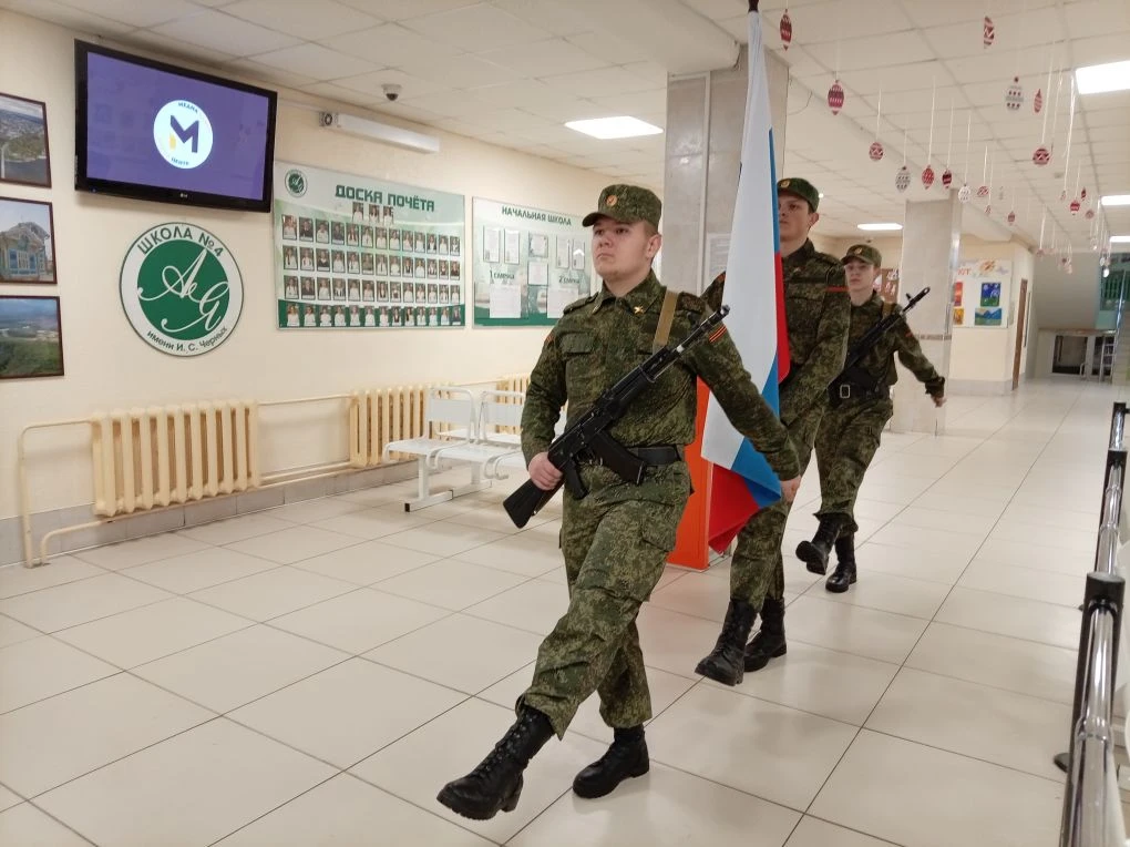 🚩19 января флаг Российской Федерации внесла знаменная группа: Порохнюк Дмитрий 10Г, Родионов Александр 10Г, Привалов Роман 9Б.