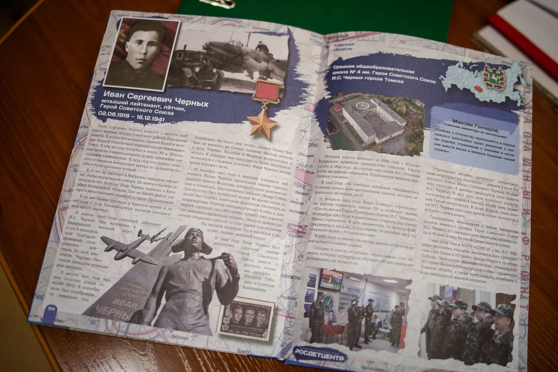 🎄На итоговом мероприятии советников директора по воспитанию Томской области нашей школе вручили экземпляр книги, в которой размещены школы со всех регионов России, названные именами Героев России и Советского Союза. Наша школа вошла в эту книгу, как представитель Томской области, ей посвящен разворот книги. В книге рассказывается об истории подвига Героя, патриотических мероприятиях школы.
