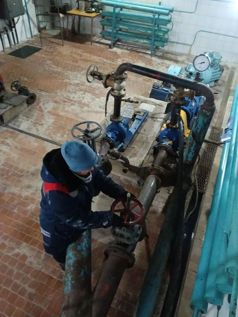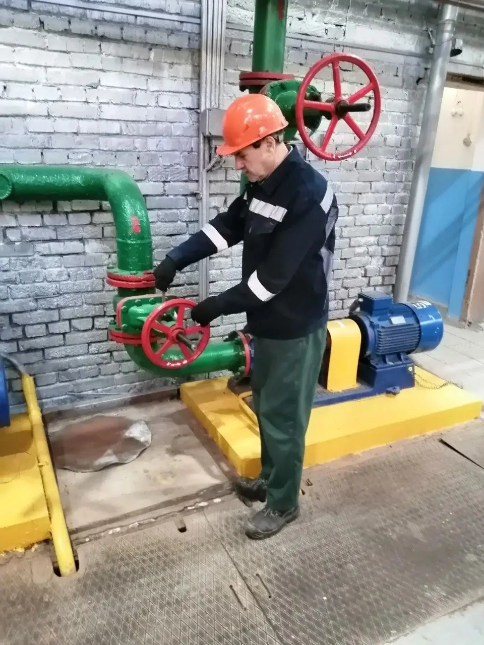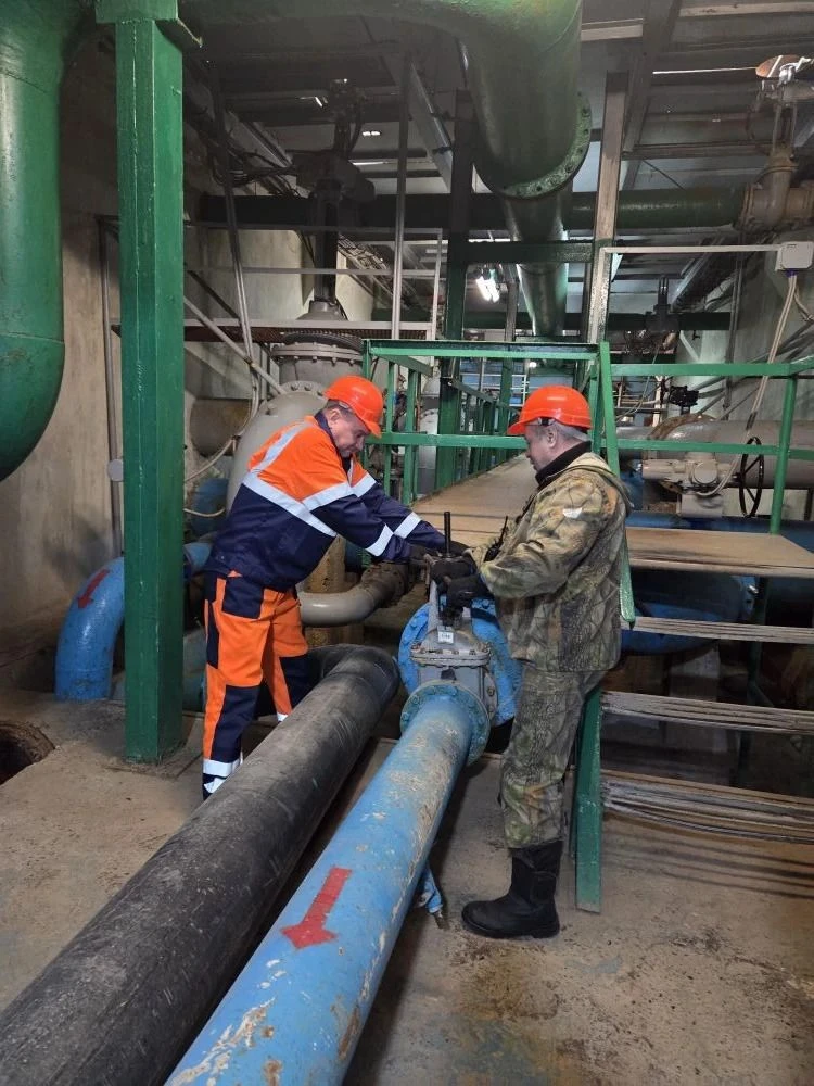 … где специалисты цеха "Водоканал" выполняют работы по обслуживанию оборудования.