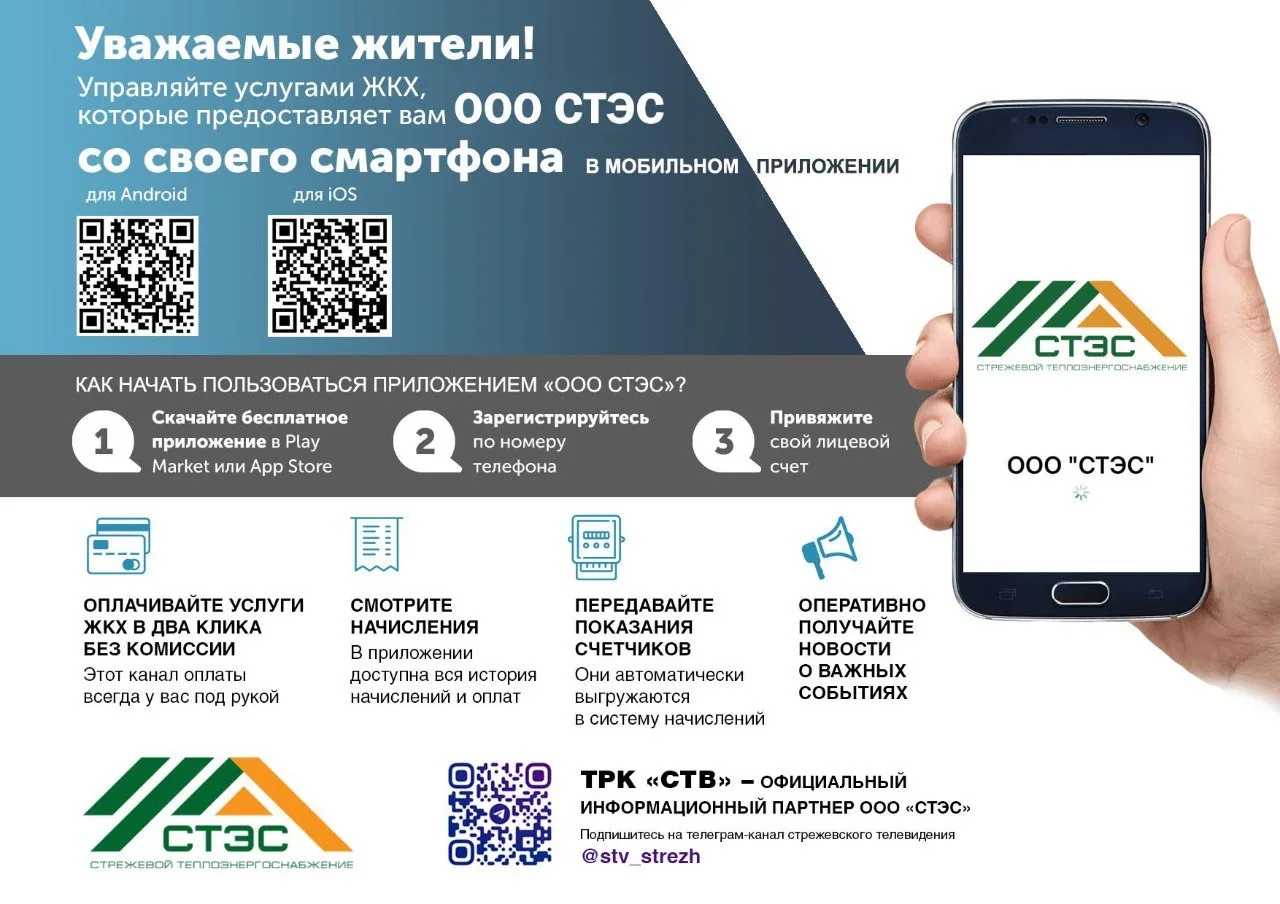 Передавать показания счетчиков, смотреть начисления и оплату, без комиссии оплачивать услуги ЖКХ, а также получать новости о важных событиях компании - все это можно сделать в мобильном приложении общества "СТЭС".