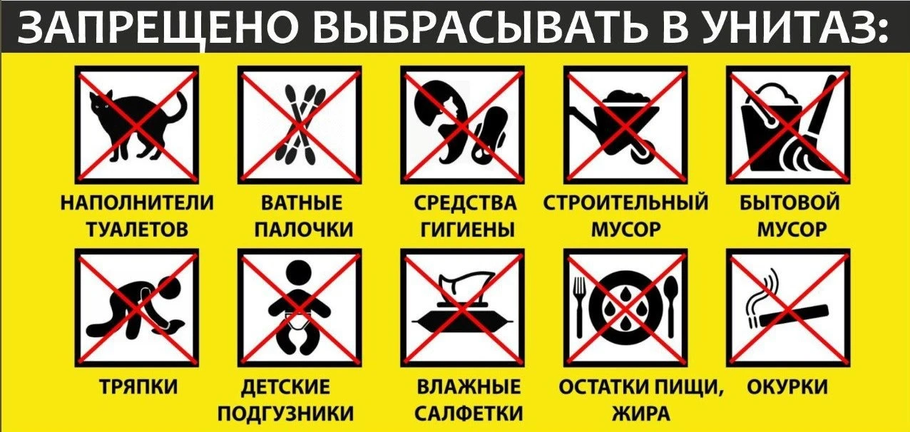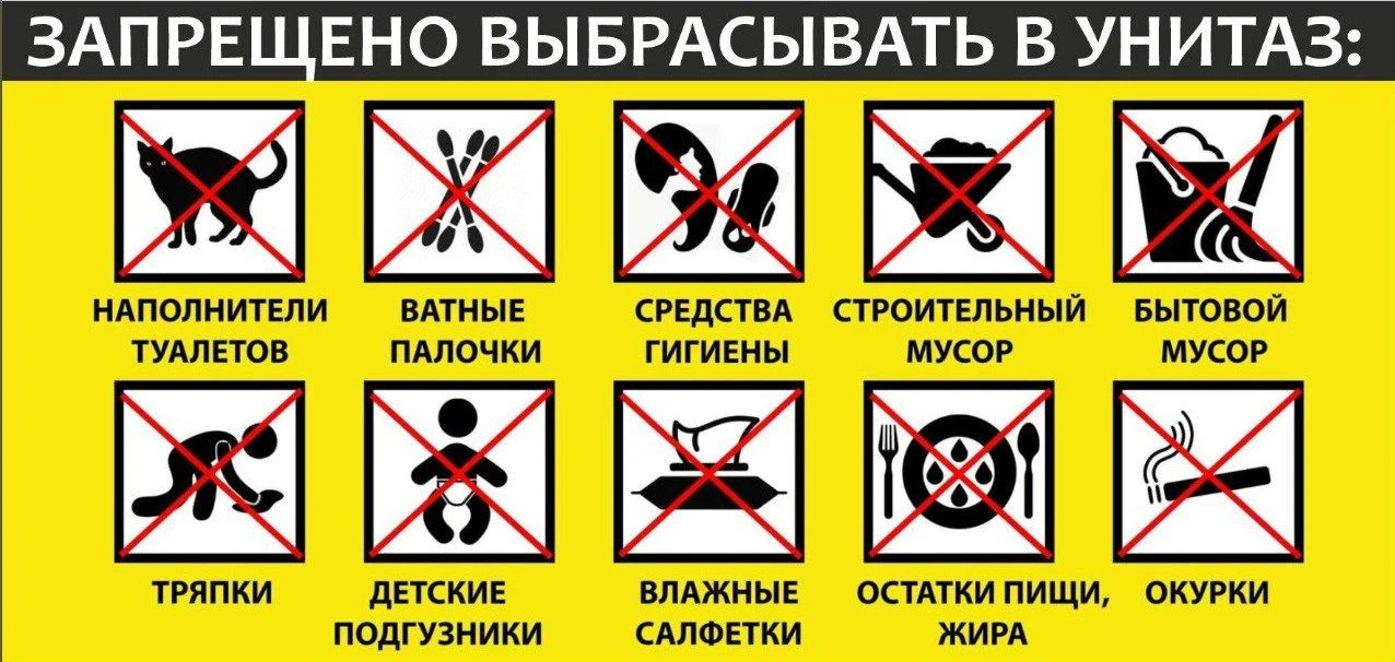 Еще раз напоминаем, что в унитаз нельзя выбрасывать: