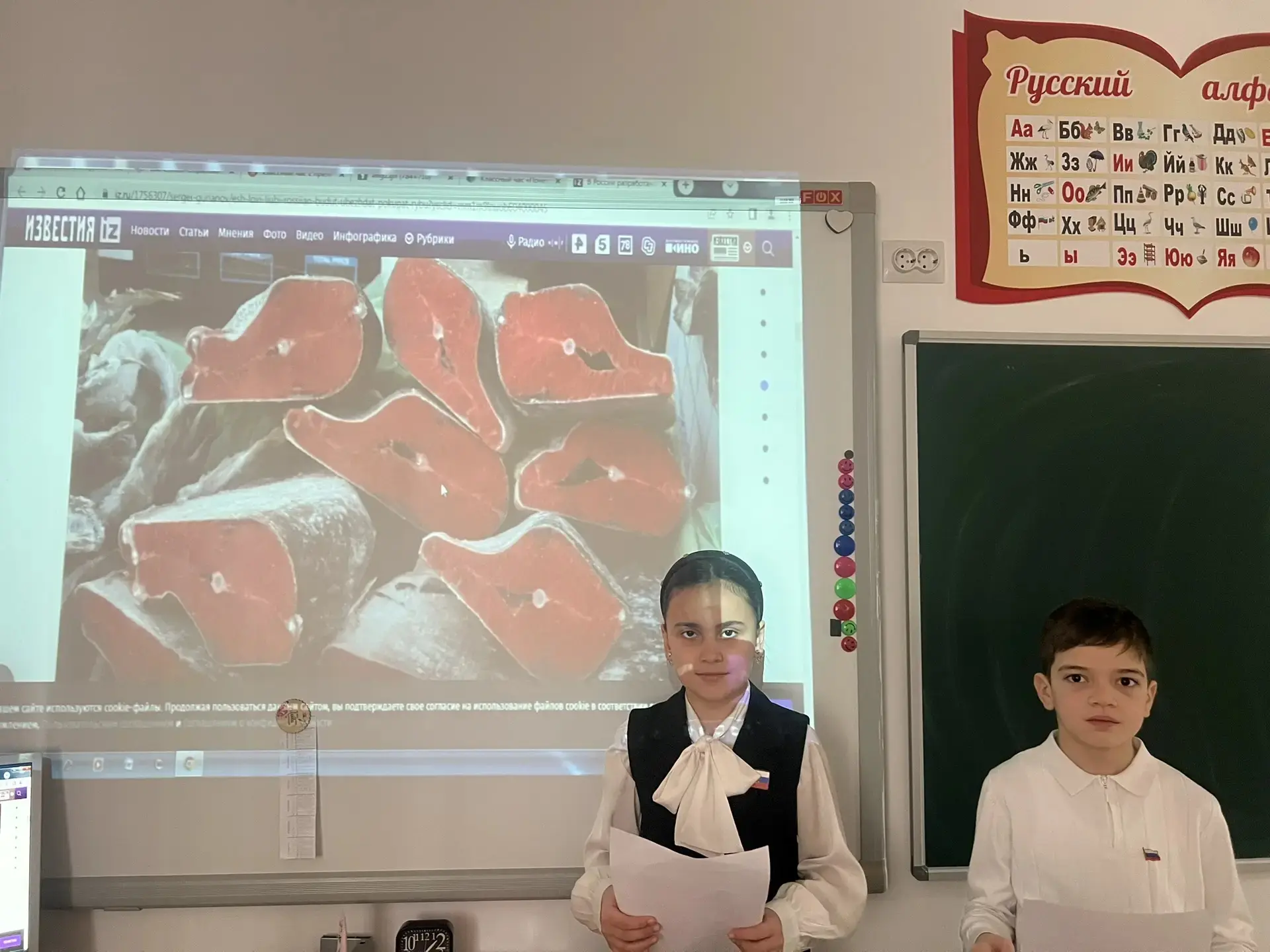 В соответствии с поручением Федерального агентства по рыболовству от 25.12.2025 N2513, в рамках реализации Плана мероприятий по увеличению внутреннего потребления отечественной рыбной продукции на период до 2030 года, утвержденного заместителем Председателя Правительства РФ Д.Н.Патрушевым ,во исполнения письма Минпросвещения КБР от 12.02.2026 г. N22-16-15/1309 в 4 классе был проведен классный час о пользе рыбной продукции. Классный руководитель Балкизова А.Б.