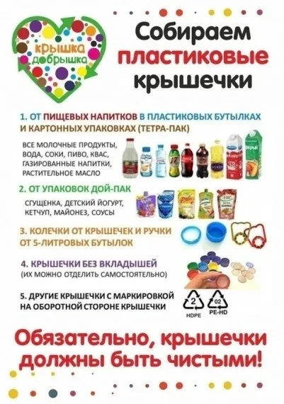Друзья, приглашаем вас присоединиться к нашей акции «Добрые крышечки» по сбору пластиковых крышечек!