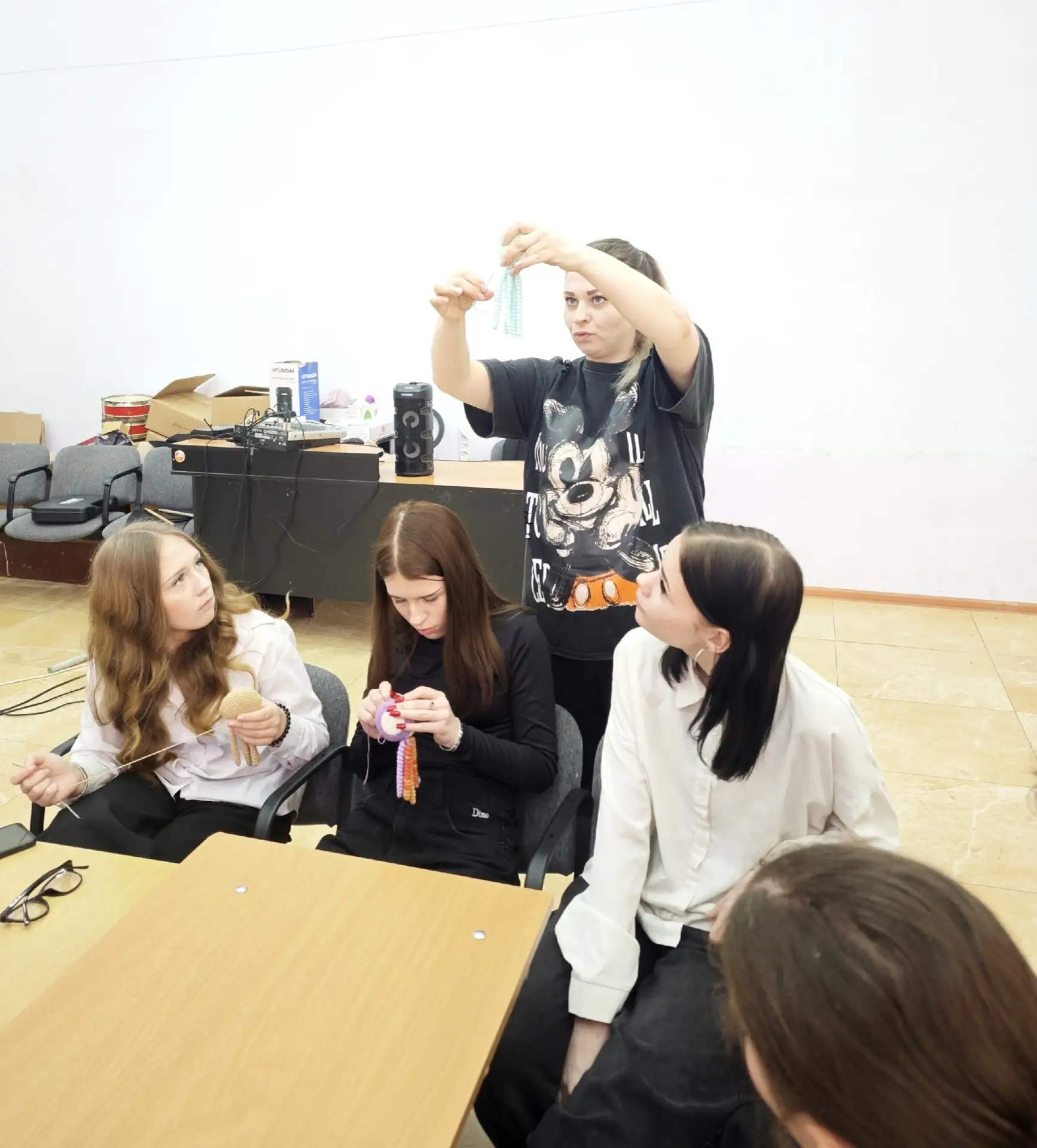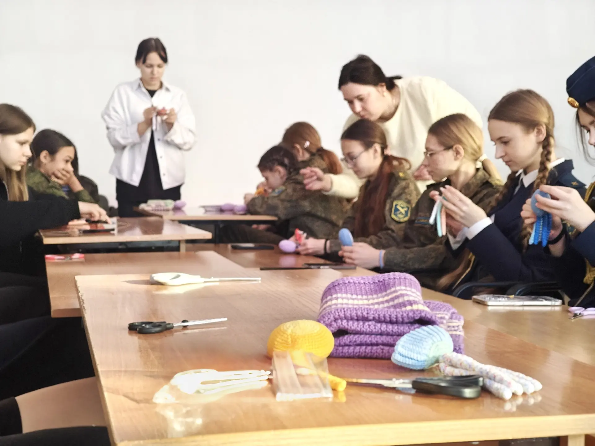 Сегодня координатор «28 петель» Тула Крис и фея помощница Олечка провели аж два занятия в Центре образования №12 города Тулы, потому что в одно все желающие не поместились🤗