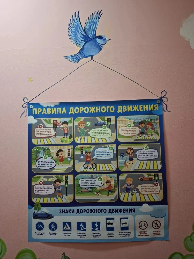 Одной из таких эффективных технологий стало создание «говорящей стены» по правилам дорожного движения. Это яркое и интерактивное пространство, где дети в игровой форме могут приобретать и закреплять знания о безопасном передвижении, учиться последовательности действий, развивать навыки взаимодействия со сверстниками. И начинать этот процесс обучения можно уже с младших групп.