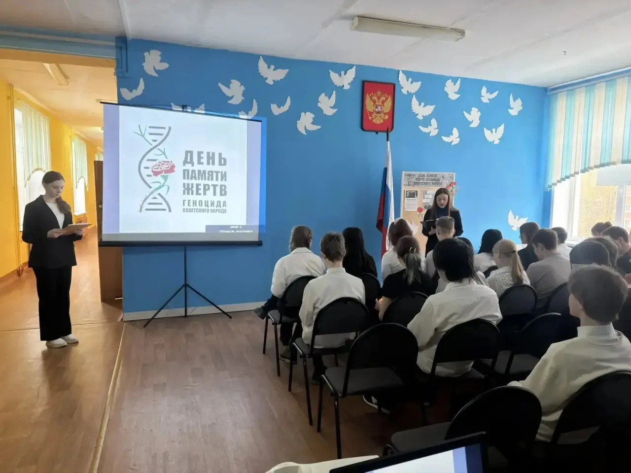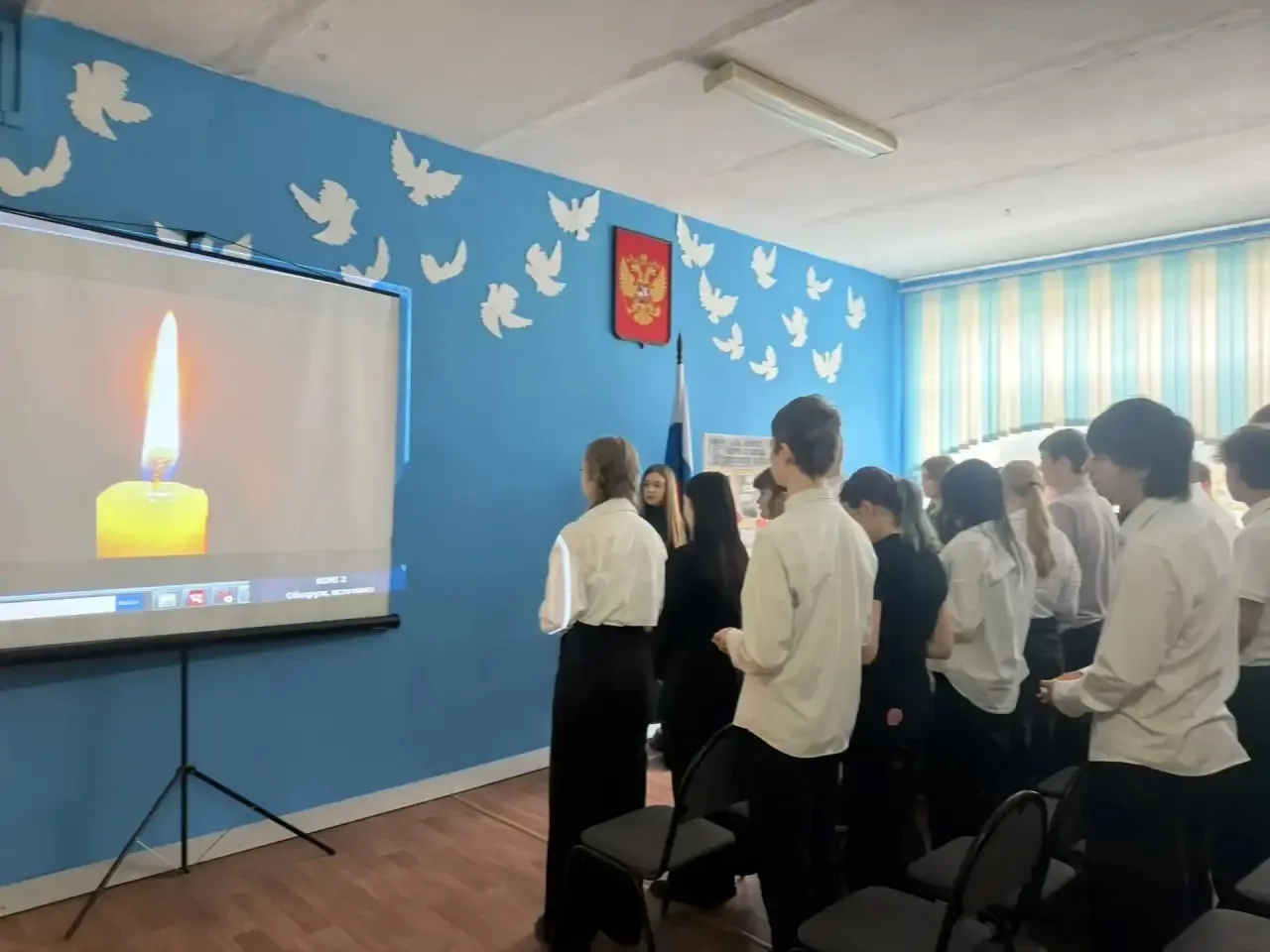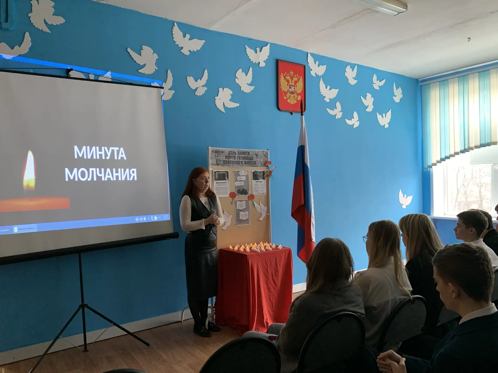 Ученики посмотрели фрагменты документальных фильмов и хроники военных лет. Эти кадры произвели на ребят сильное впечатление — невозможно остаться равнодушным, видя свидетельства тех страшных событий. В завершение мероприятия все присутствующие почтили память жертв геноцида минутой молчания — в абсолютной тишине каждый смог прочувствовать тяжесть тех лет и отдать дань уважения погибшим.