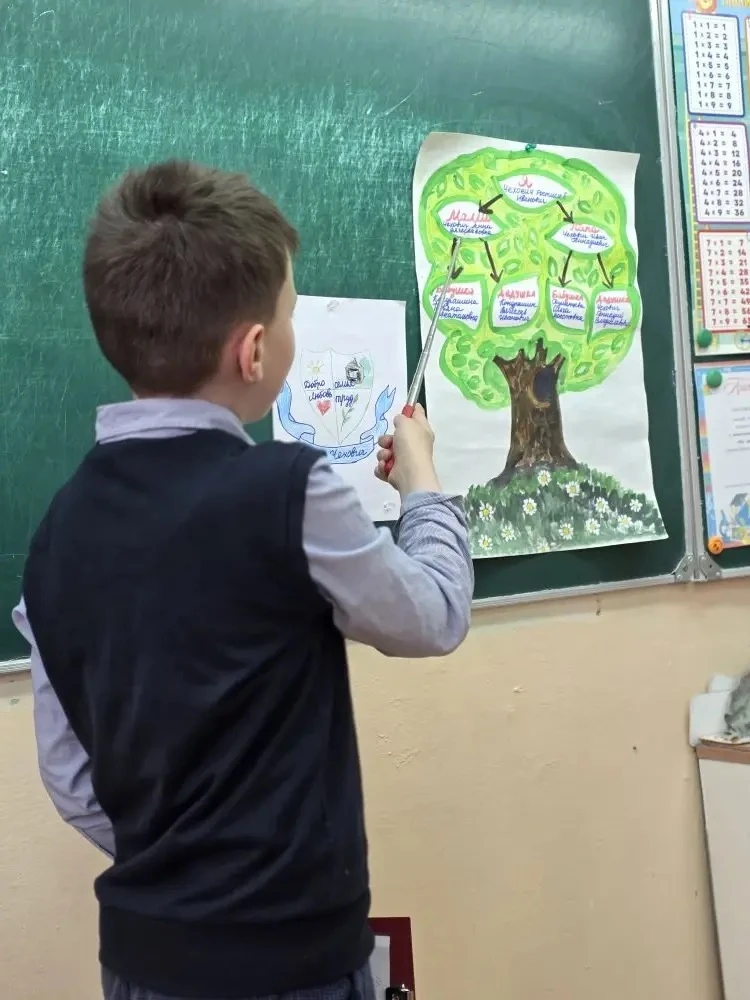📜Каждый герб получился уникальным: на них ожили семейные традиции, любимые увлечения и ценности, которые передаются из поколения в поколение. Второклассники с гордостью рассказывали о своих бабушках и дедушках, о происхождении фамилий и значении каждого символа на гербе. Получился очень искренний и важный разговор о том, что любовь к большой Родине начинается с памяти о своей маленькой семье.