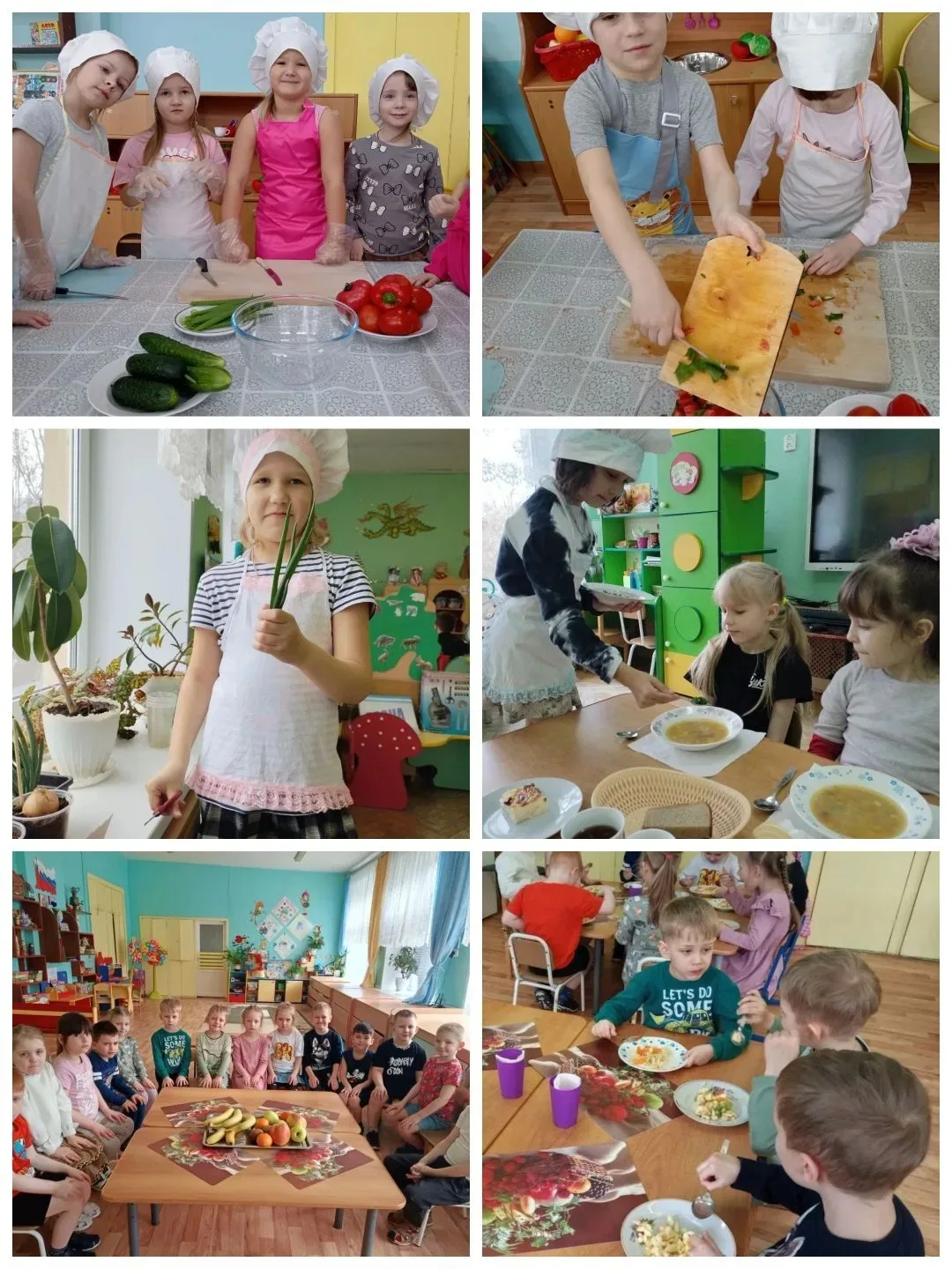 А самым вкусным развлечением стал мастер-класс от повара "Правильно питайся - здоровием запасайся!", на котором дети самостоятельно приготовили овощной салат "Витамин" и фруктовый салат «Витаминка».