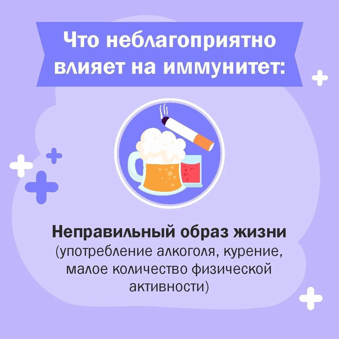 Курение и алкоголь буквально разрушают организм, а недостаток движения замедляет все обменные процессы, включая работу иммунных клеток.