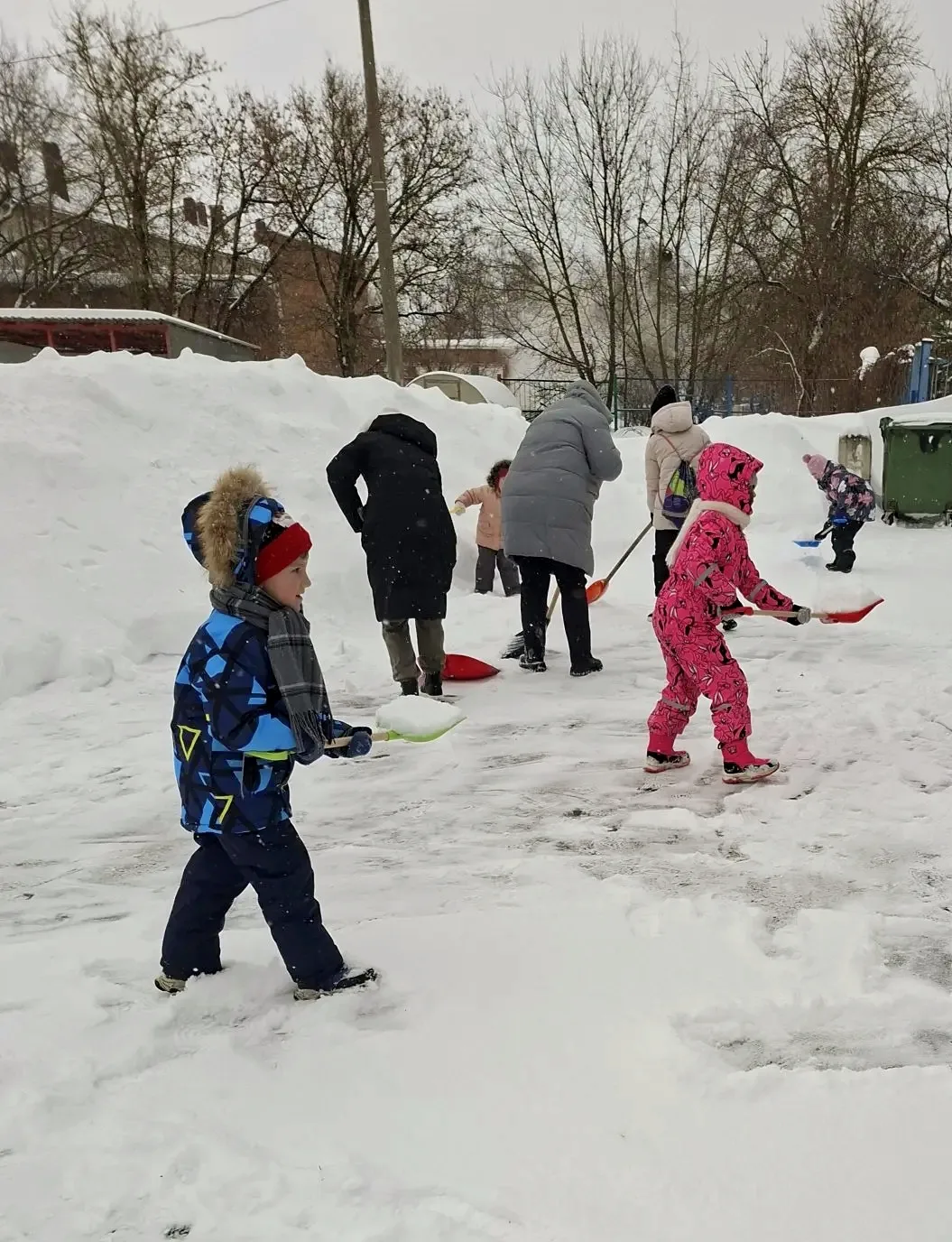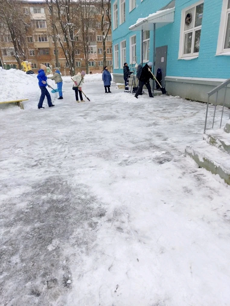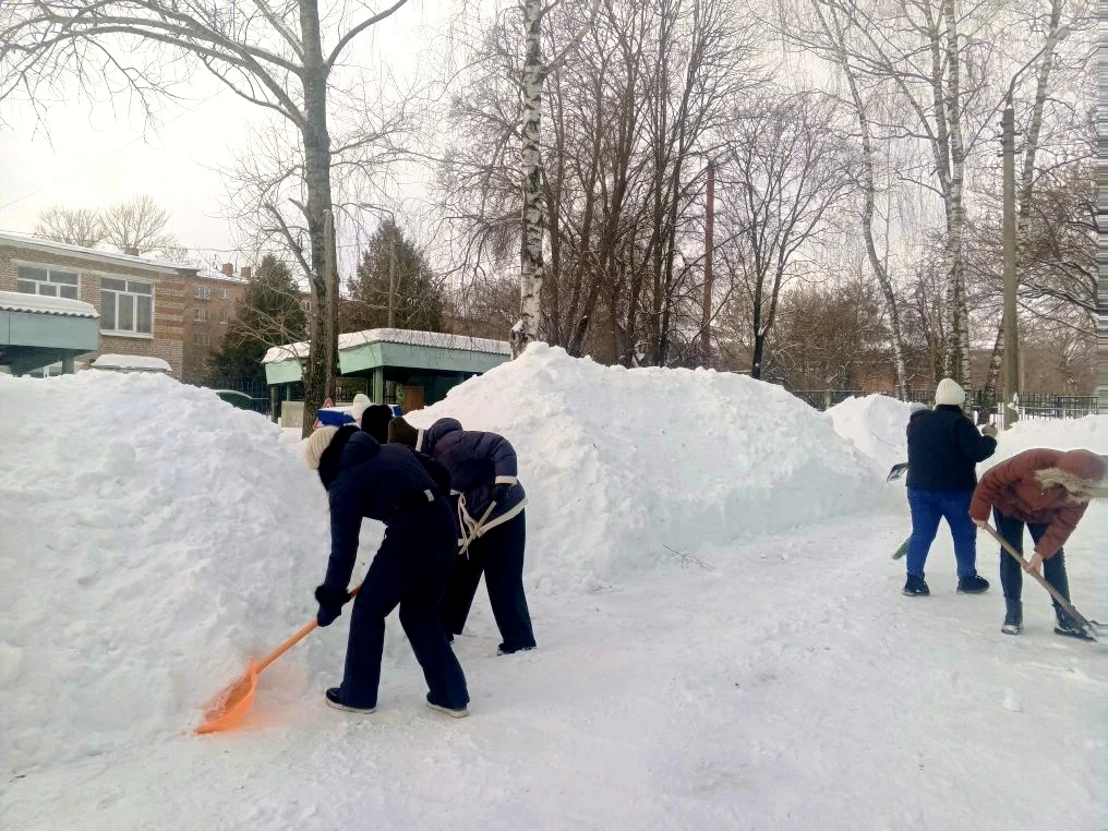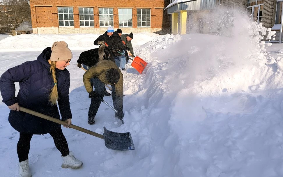 На борьбу со снегом вышли учителя, родители и учащиеся — вместе мы справились с заснеженной территорией и пришкольным участком!