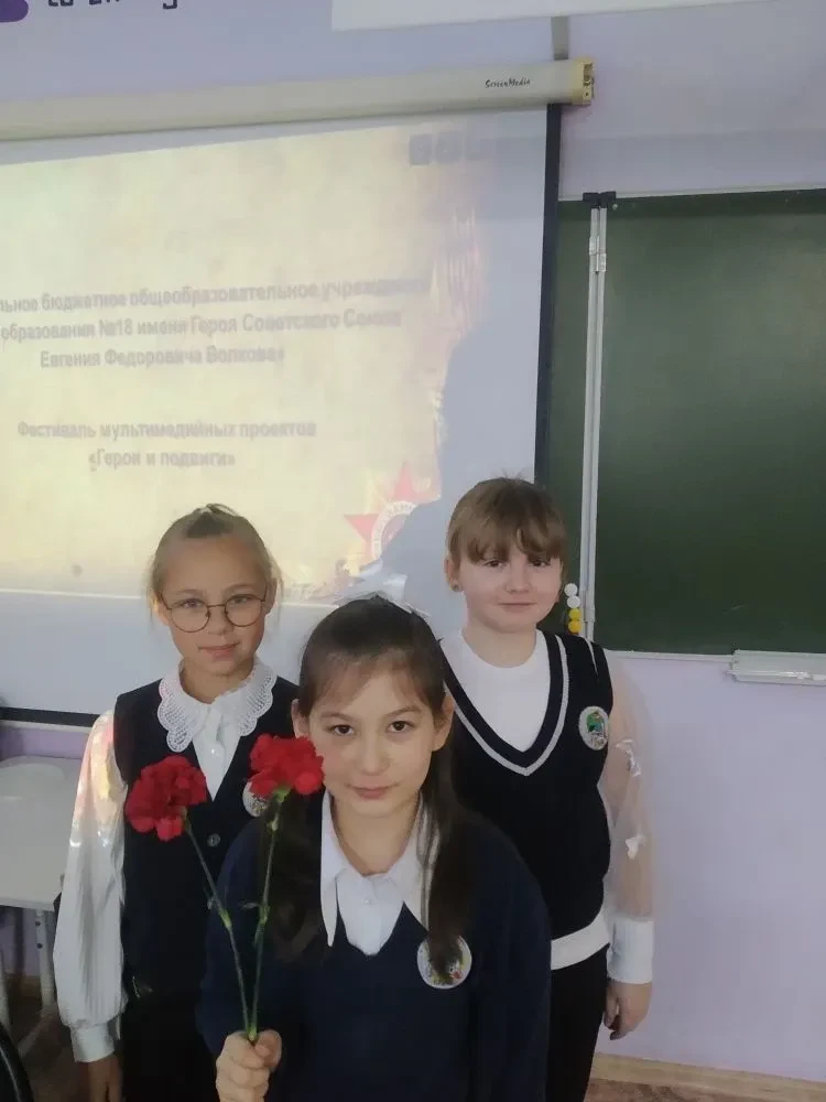 Так во время классного часа дети вспомнили и почтили память Евгения Фёдоровича Волкова, имя которого носит наш ЦО. Его жизнь и подвиг - достойный пример смелости и мужества.