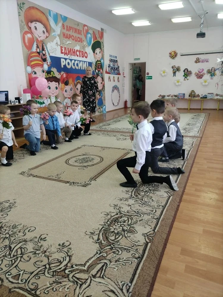 Дети исполняли задорные песенки, яркие танцы, посвящённые весне и женщинам. Каждый ребёнок старался показать свою любовь и уважение самыми искренними способами. Атмосфера праздника была пропитана нежностью и радостью, создавая незабываемые впечатления для всех присутствующих.