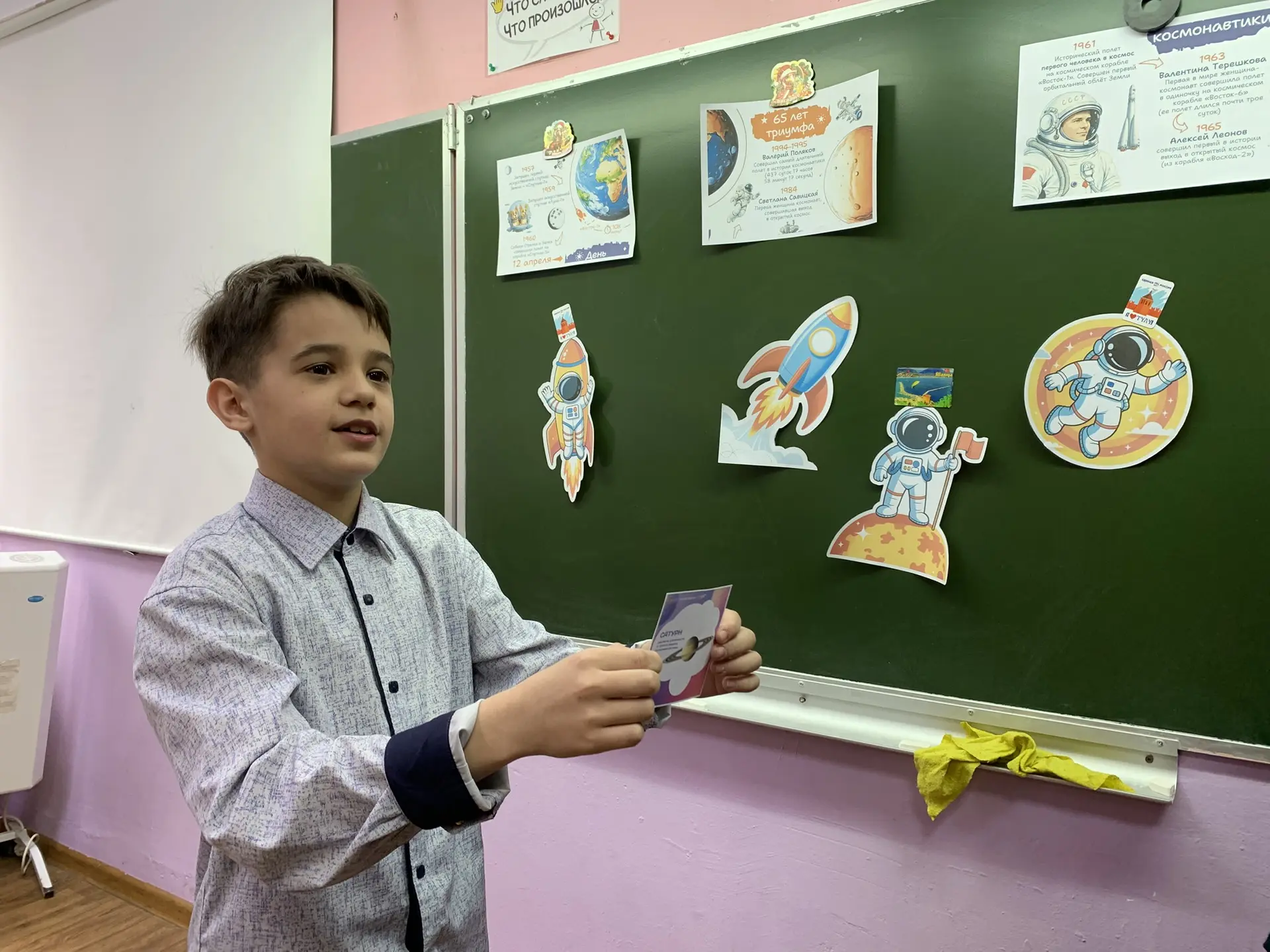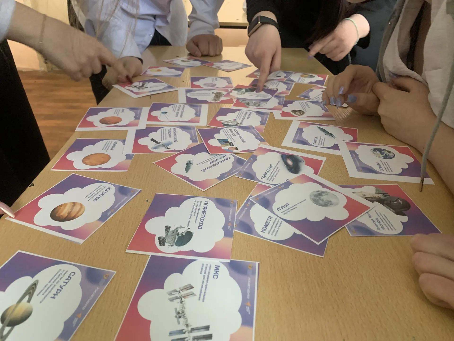 12 апреля вся страна отмечает День космонавтики. В преддверии этой даты наш советник директора по воспитанию организовал для учеников увлекательную настольную игру «Кто я?» в космическом формате 🌌