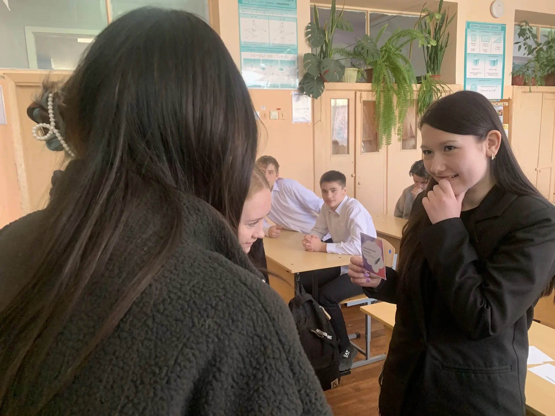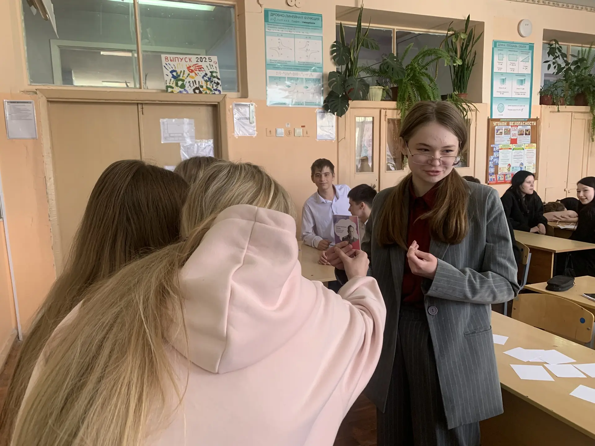 В конце встречи каждый ученик получил полезный подарок — блокнот, а самые активные и любознательные участники были отмечены памятными значками!