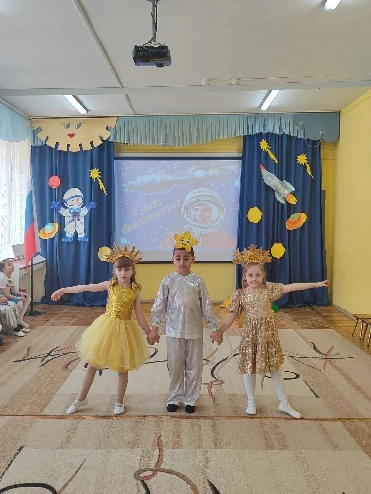 Во время бесед воспитанники узнали о человеке, покорившем космическое пространство, — Юрии Алексеевиче Гагарине, первой женщине-космонавте Валентине Терешковой, о том, как четвероногие друзья человека Белка и Стрелка проложили путь к звёздам, о планетах больших и маленьких, об их свойствах. Свои знания и умения дети закрепили творческими работами, которые получились яркими и оригинальными. Эта неделя прошла весело и оставила море позитивных эмоций у воспитанников детского сада.