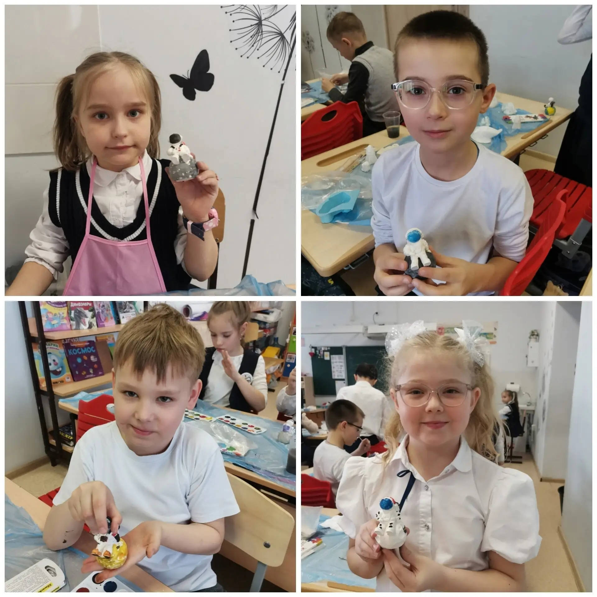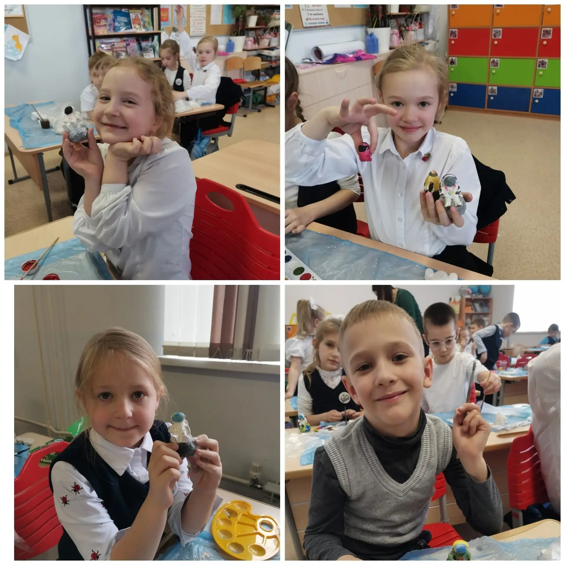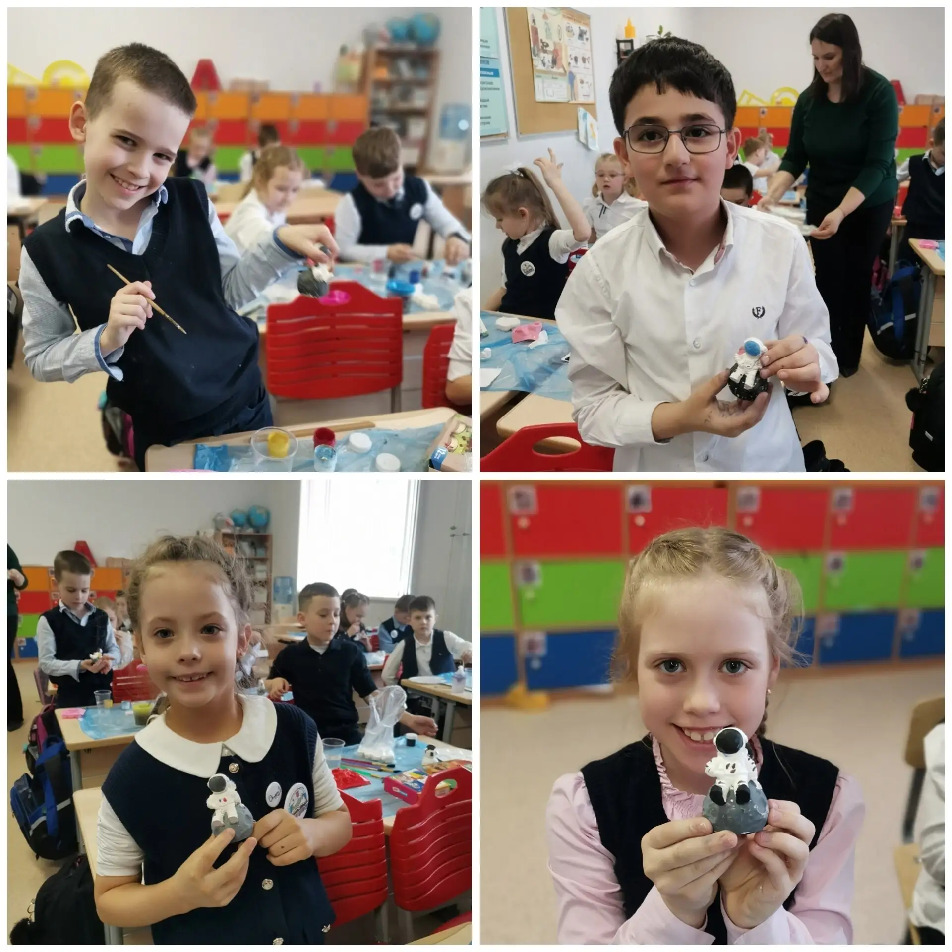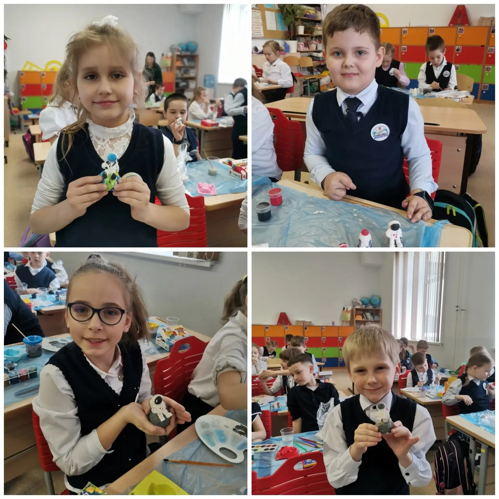 🎨 С увлечением мальчишки и девчонки лепили и расписывали ракеты, планеты и космонавтов. В классе царила атмосфера творчества и вдохновения, а результаты порадовали всех — каждая фигурка получилась уникальной и яркой!