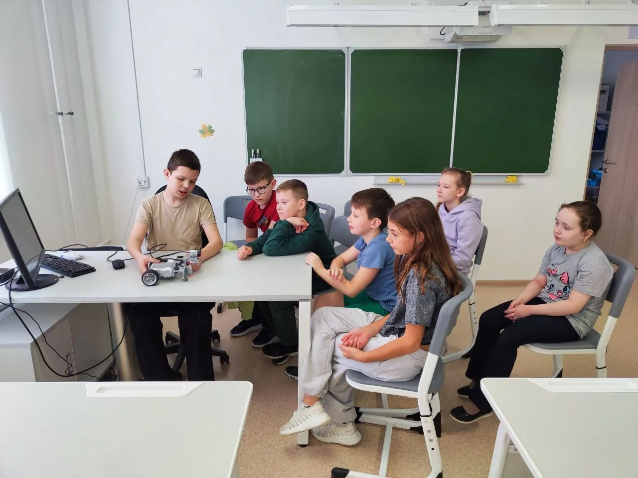 🔎Сначала педагог дополнительного образования Феофилов Д. С. и обучающиеся кванториума увлекательно рассказали ребятам о мире робототехники — о том, как устроены роботы, и где они применяются.