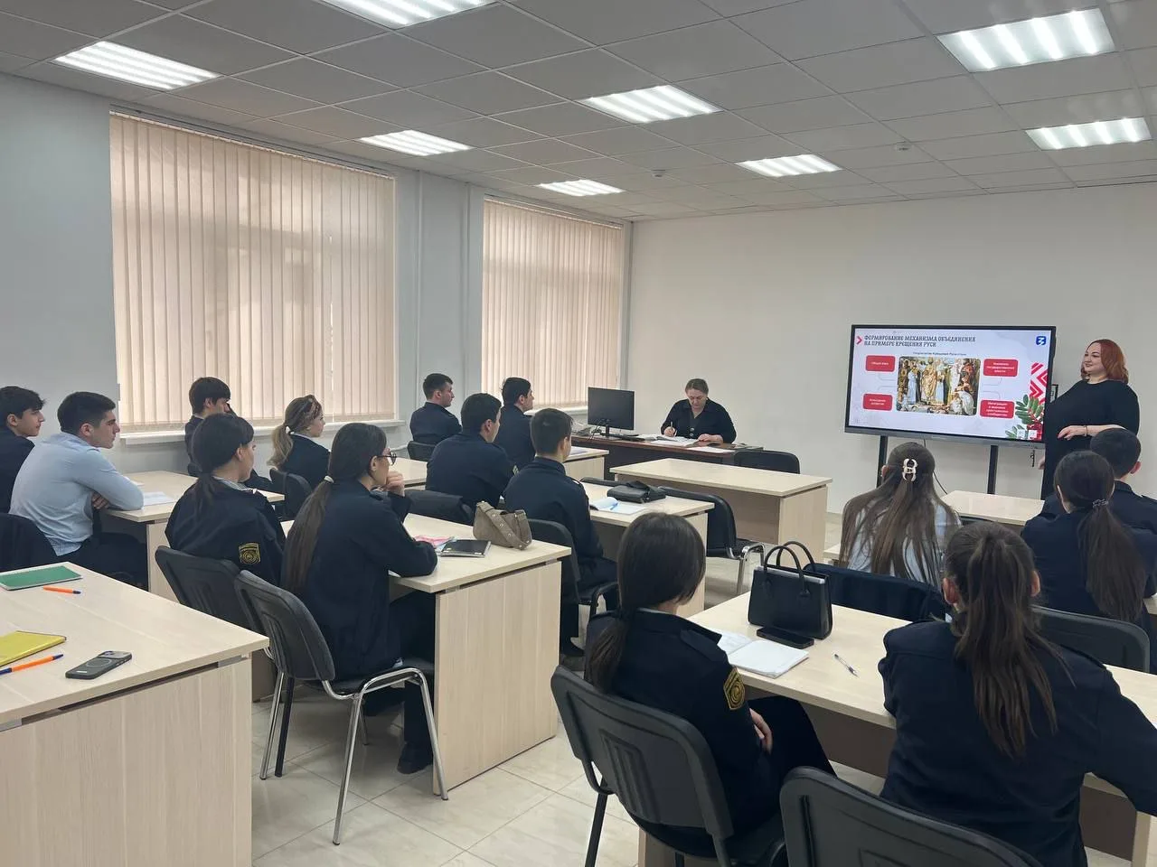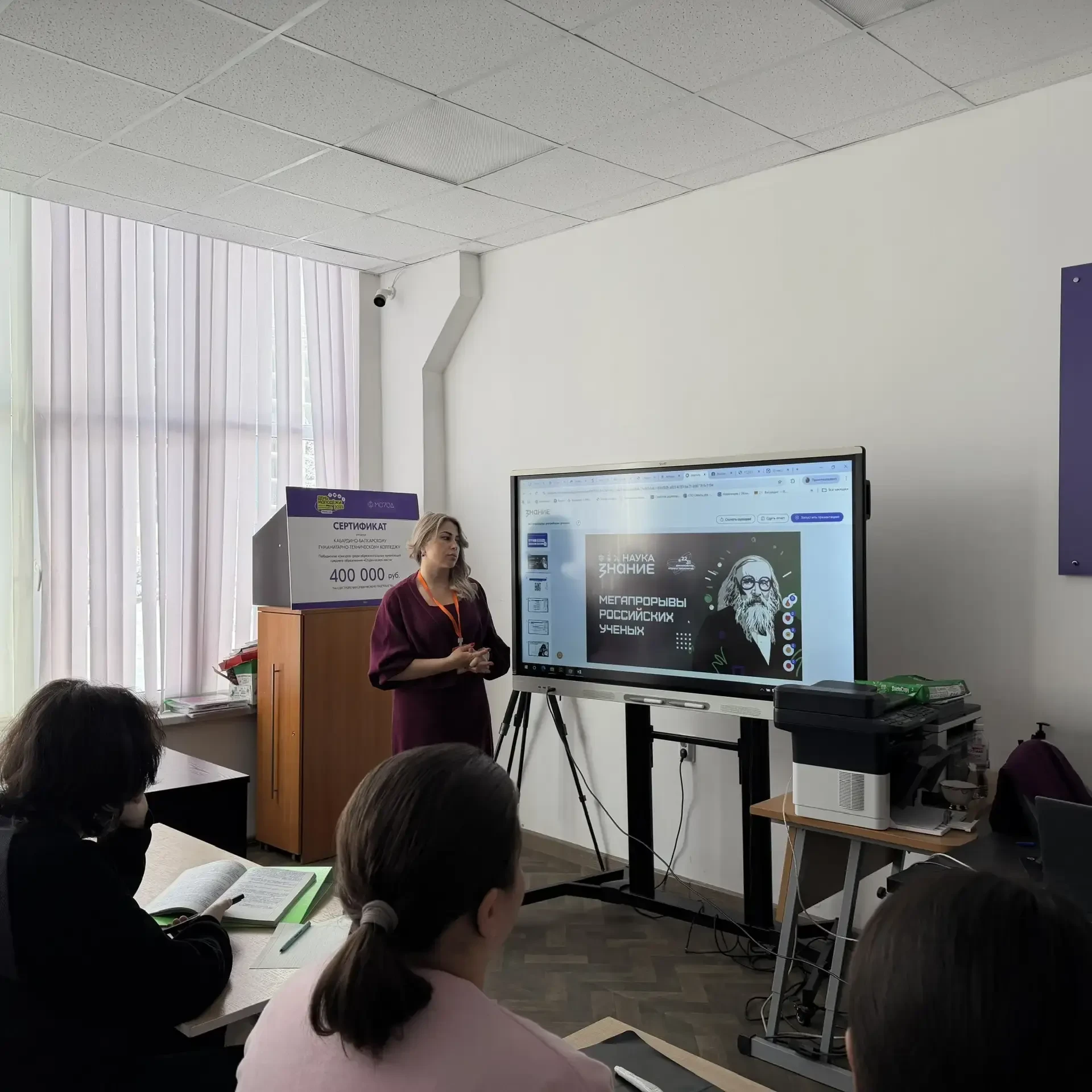 06.02.2026г. в Кабардино-Балкарском гуманитарно-техническом колледже была проведена лекция «Мегапрорывы российских ученых» в формате классного часа советником директора по воспитательной работе. Студенты 1-3 курсов прослушали лекцию с видеороликом о великих ученых, и с интересом поучаствовали в обсуждении. Обучающиеся сделали общий вывод о том, что наука - это сила, дающая прогресс, движение, развитие во всех сферах жизни: медицина, образование, экономика, производства.