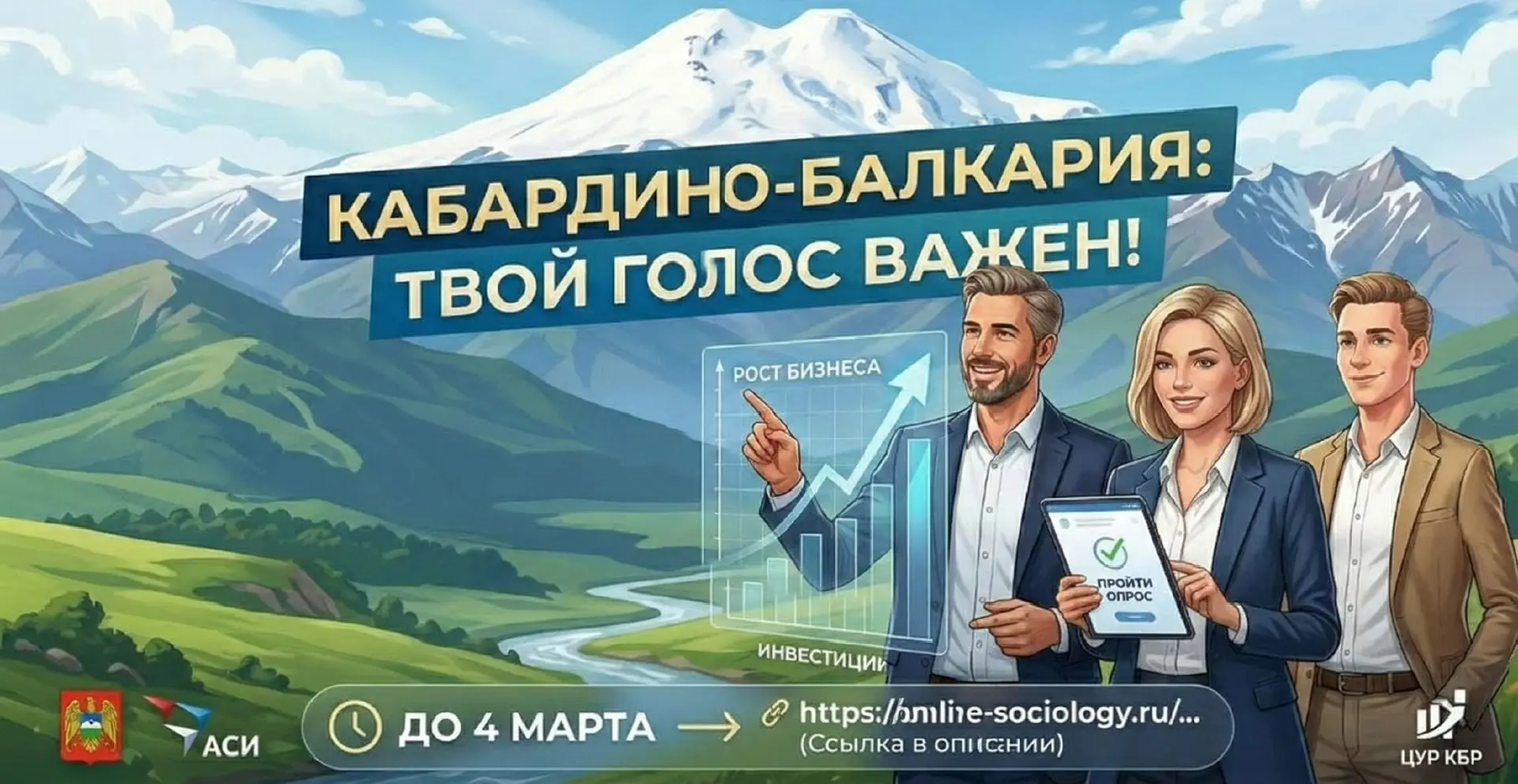 Центр управления регионом Кабардино-Балкарской Республики проводит важное социологическое исследование, направленное на оценку состояния инвестиционного климата в нашем регионе. Это часть масштабного национального проекта, инициированного Агентством стратегических инициатив (АНО АСИ) по поручению Президента Российской Федерации. 🇷🇺