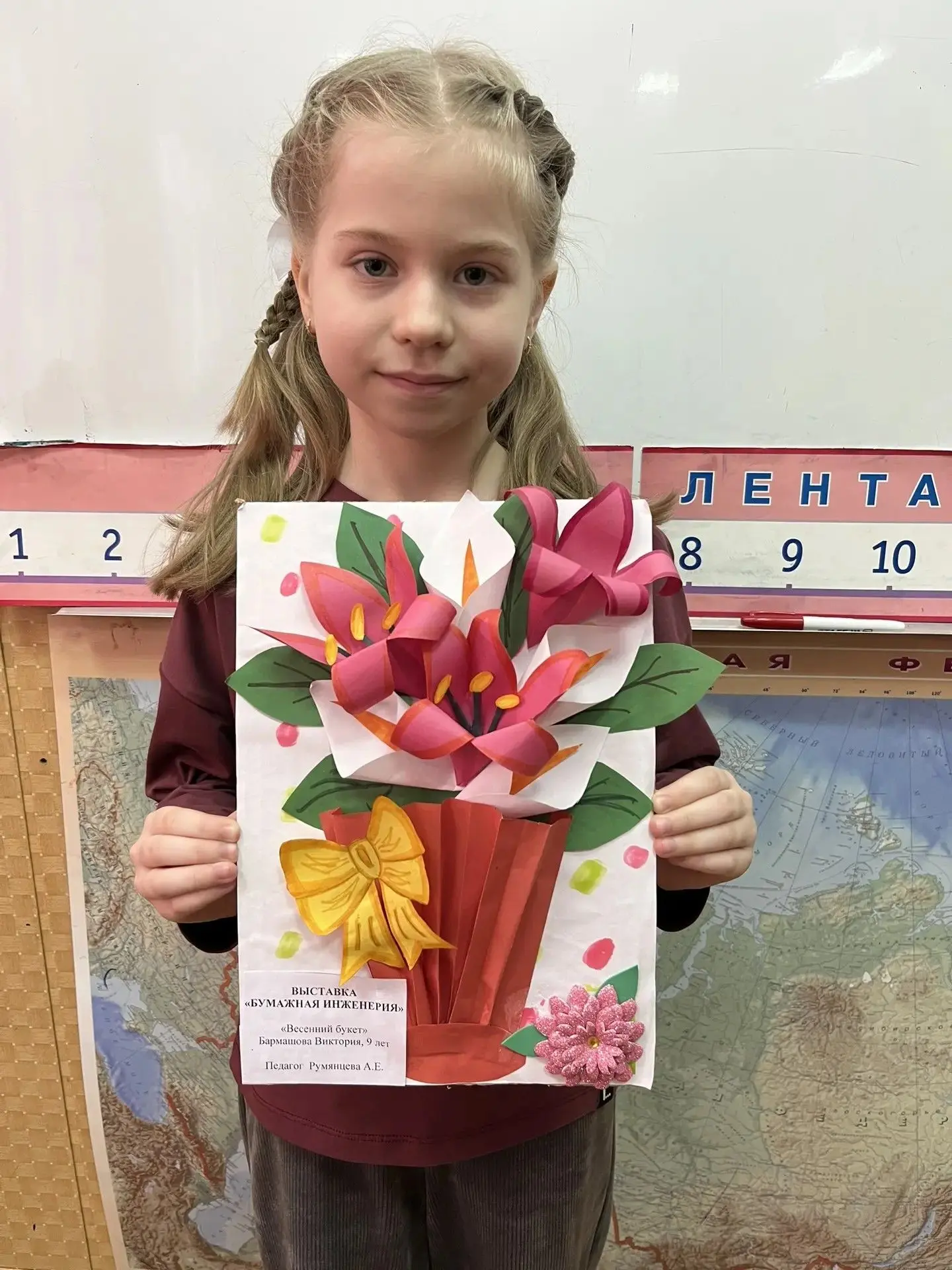 ✨ Бумажная инженерия захватывает! 🤸♀️ Подготовка к выставке идёт полным ходом — в школьных мастерских кипит творческая работа. 🛠️🎨Посмотрите, какая красота получается у младших школьников! 😍 «Весенний букет» от Осановой Елизаветы (4 «Б» класс) — это настоящее чудо из бумаги: хрупкие цветы 💐, словно ожившие под умелыми руками юной мастерицы. 👩🎨А старшеклассники выбрали путь настоящих инженеров! 🧑🔬 Учащиеся 9в класса с головой ушли в создание макетов истребителей ✈️🛩️. Здесь одной фантазии мало — нужно уметь конструировать: просчитывать каждый изгиб крыла 📐, выверять масштаб 📏, собирать сложную модель так, чтобы она не просто выглядела, а «держала форму» 💪.