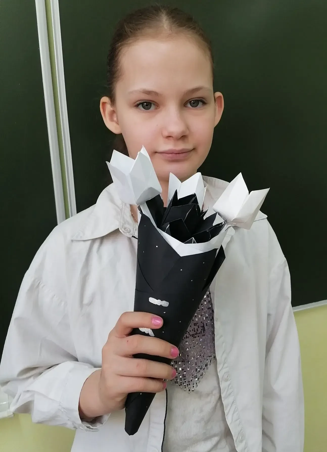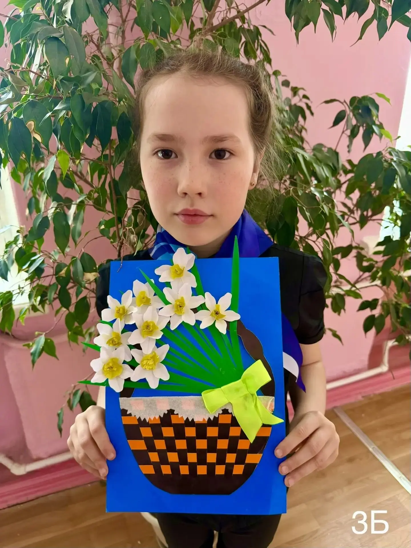 Также хотим отметить Бармашову Викторию из 2 Б класса с композицией «Весенний букет» — очень нежная и весенняя работа!