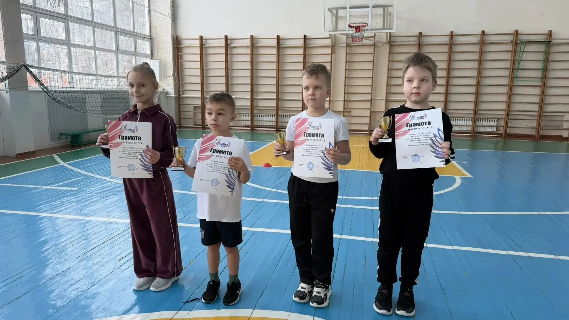 По окончанию состязаний за активное участие в спортивных играх все участники получили памятные кубки, грамоты и сладкие призы.