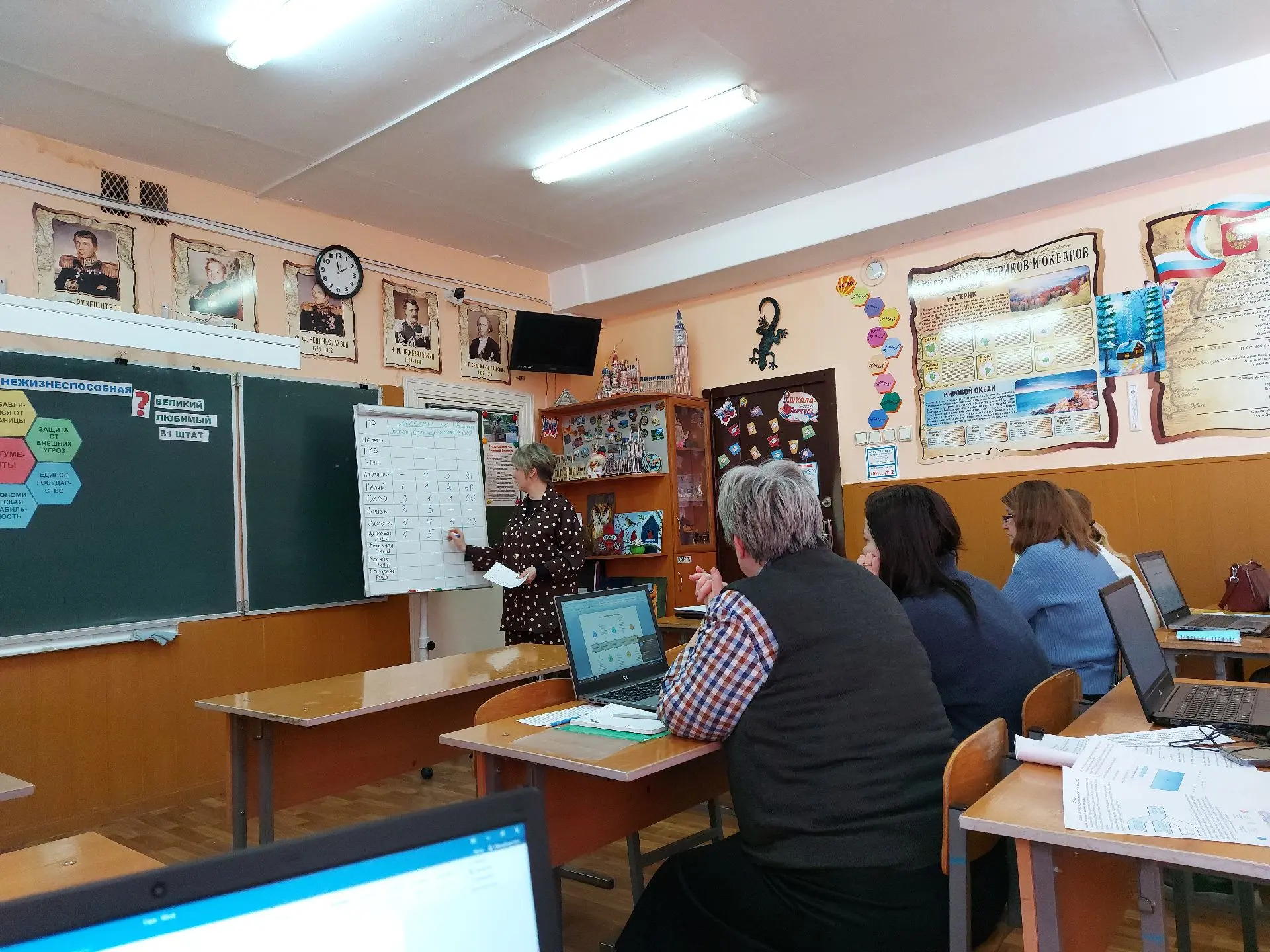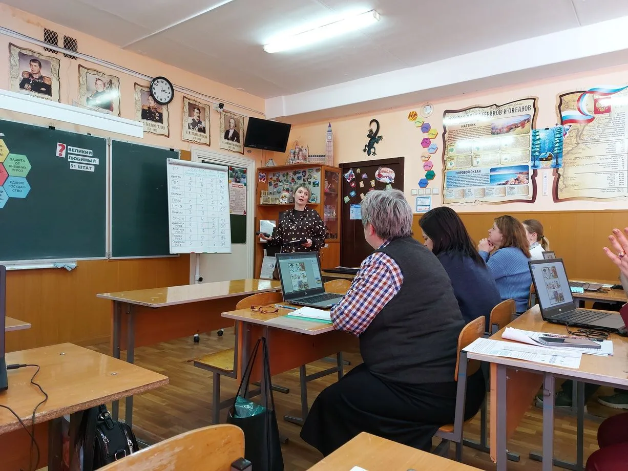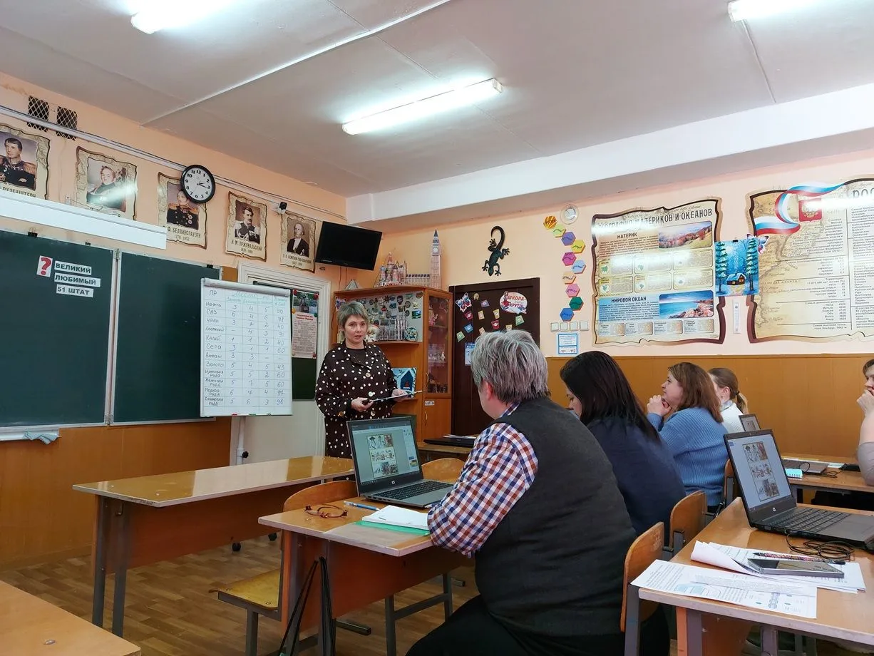 В нашей школе прошло заседание районного педагогического сообщества учителей географии по теме "Формирование глобальных компетенций на уроках географии". Окорокова Н. В. погрузила учителей географии Узловского района в проблему формирования глобальных компетенций у школьников с учетом их возрастных возможностей.