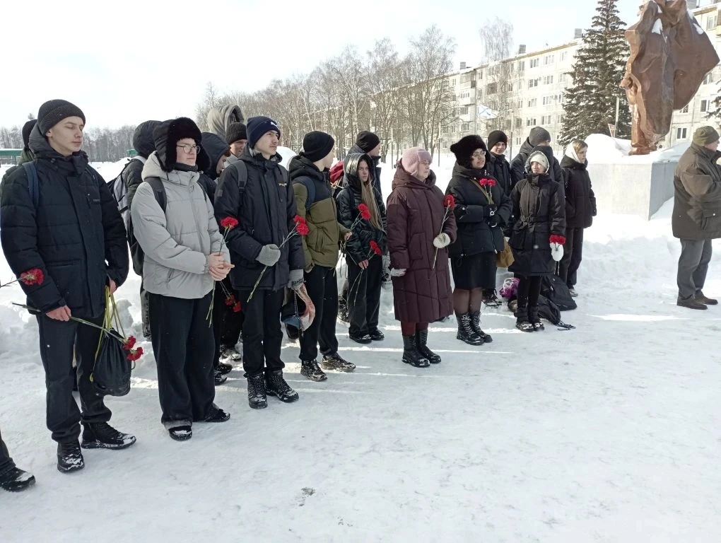 Учащиеся 10-х классов приняли участие в митинге, посвящённом Дню защитника Отечества, который состоялся на площади 50-летия Победы.