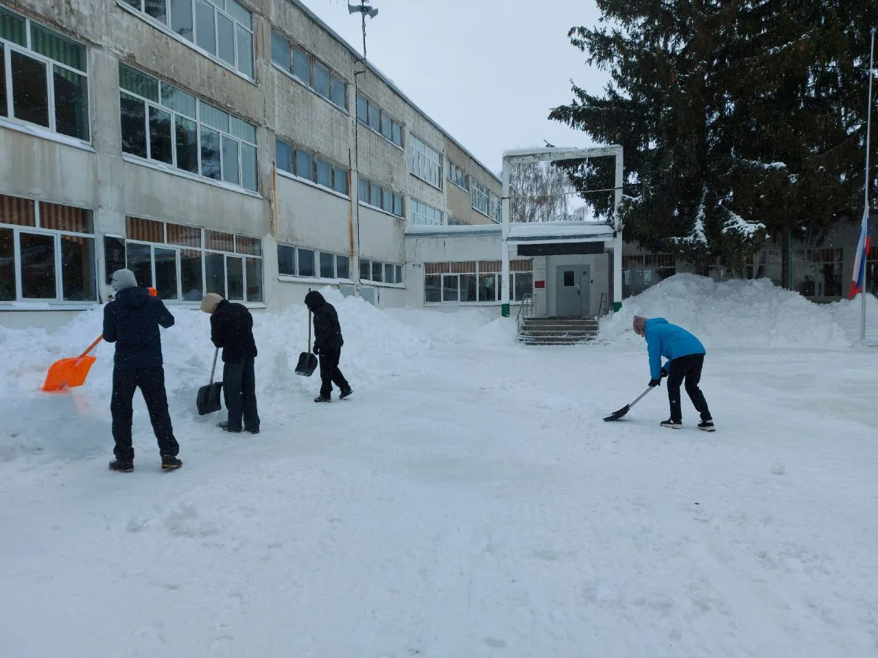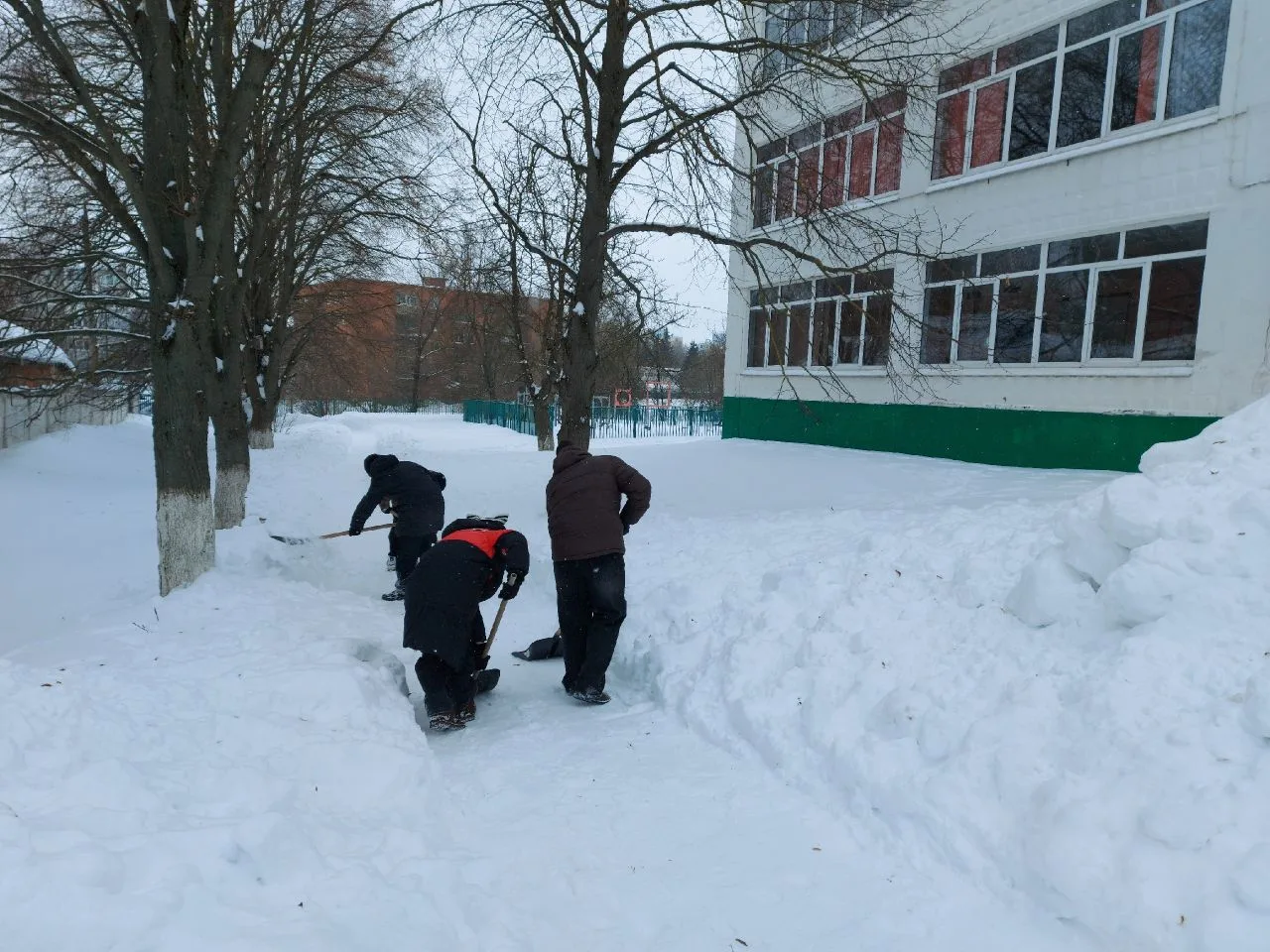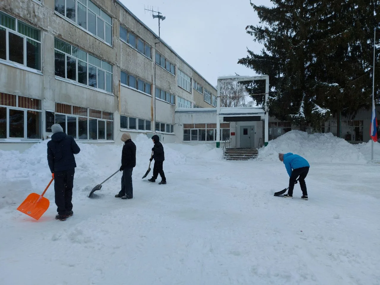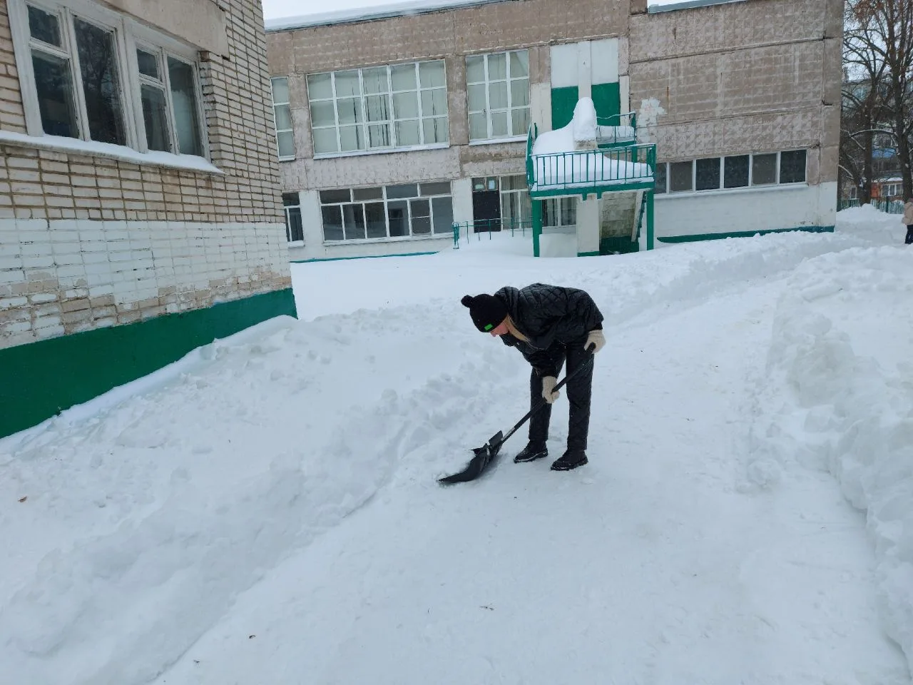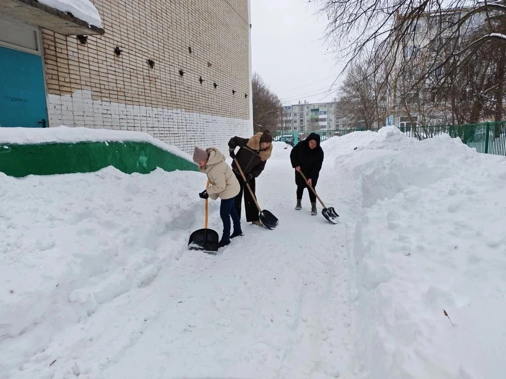 Сделано много! Расчищены тротуары и подходы к аварийным выходам, приведены в порядок входные группы и двор школы после работы трактора.