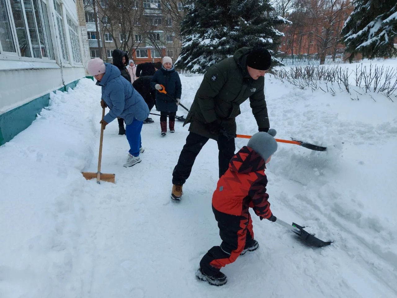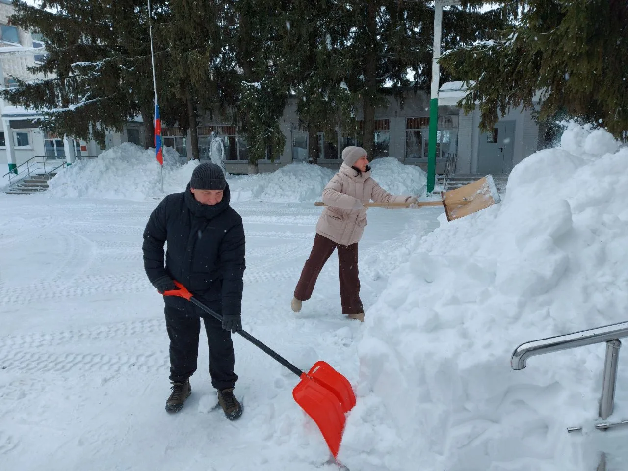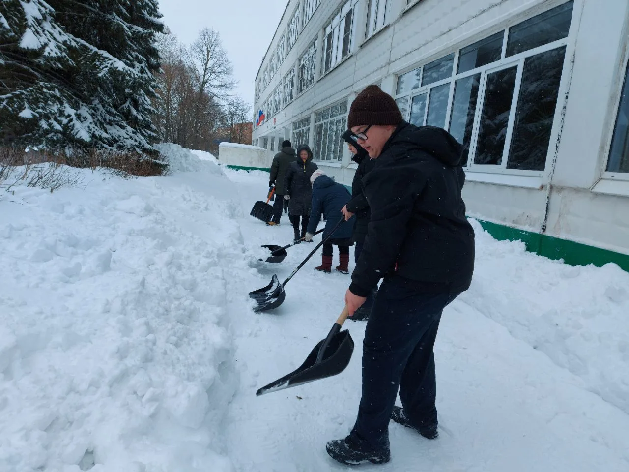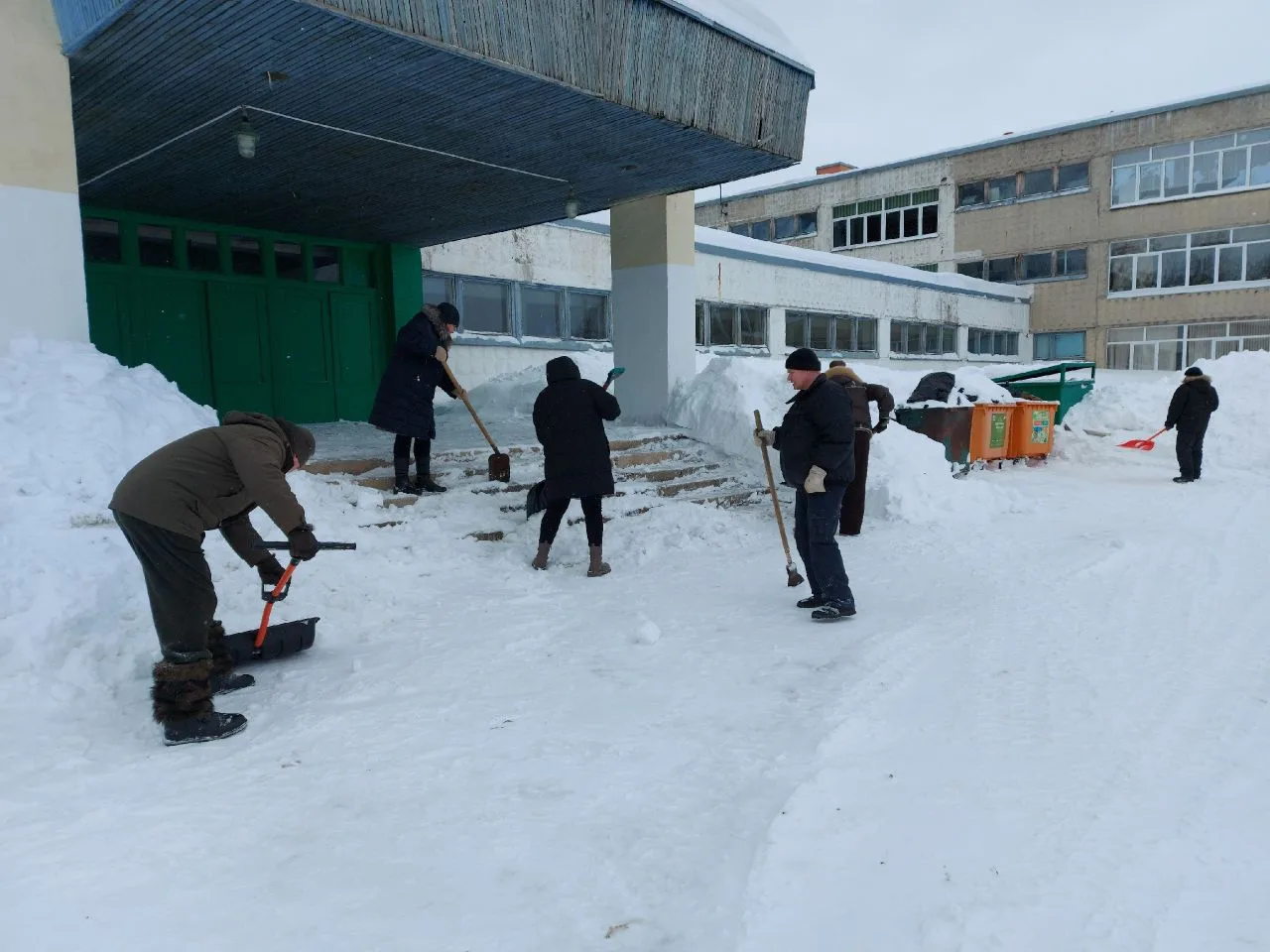Сделано много! Расчищены тротуары и подходы к аварийным выходам, приведены в порядок входные группы и двор школы после работы трактора.