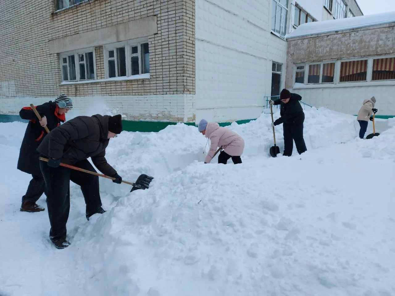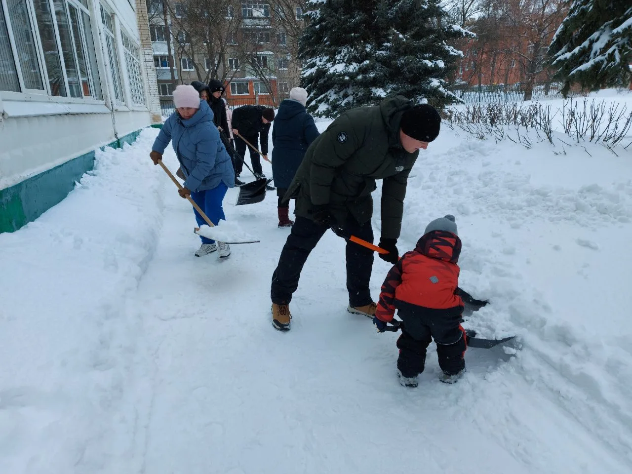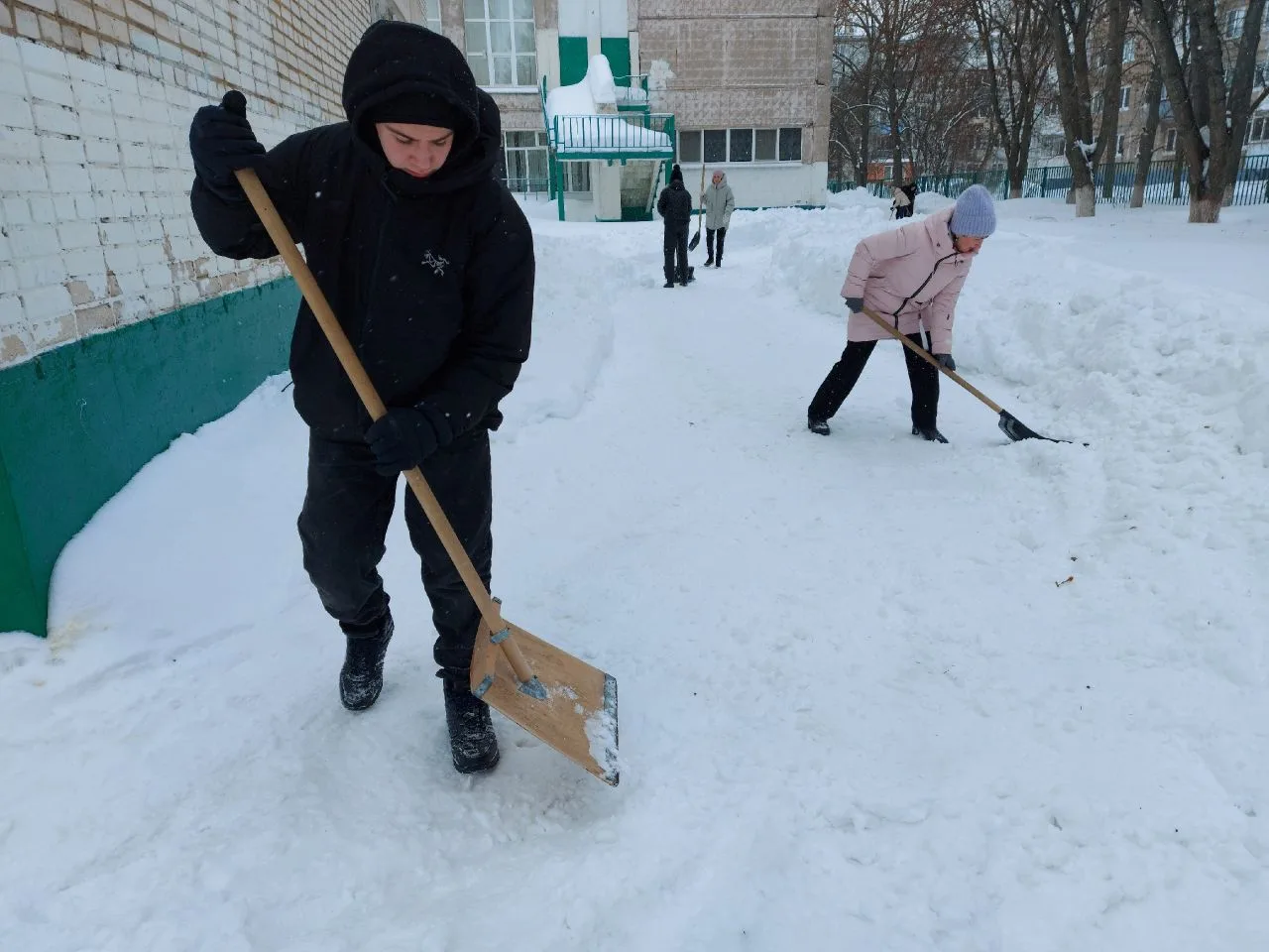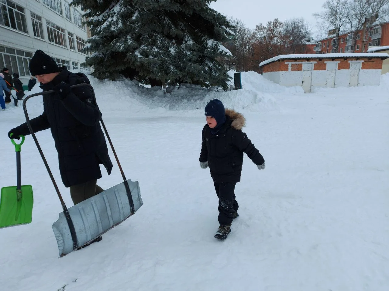 Сделано много! Расчищены тротуары и подходы к аварийным выходам, приведены в порядок входные группы и двор школы после работы трактора.