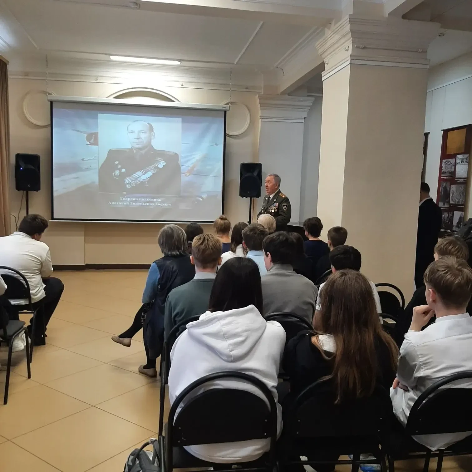 Ученики на патриотическом мероприятии смогли посмотреть редкие фотографии из жизни Анатолия Бордуна, задать волнующие вопросы.